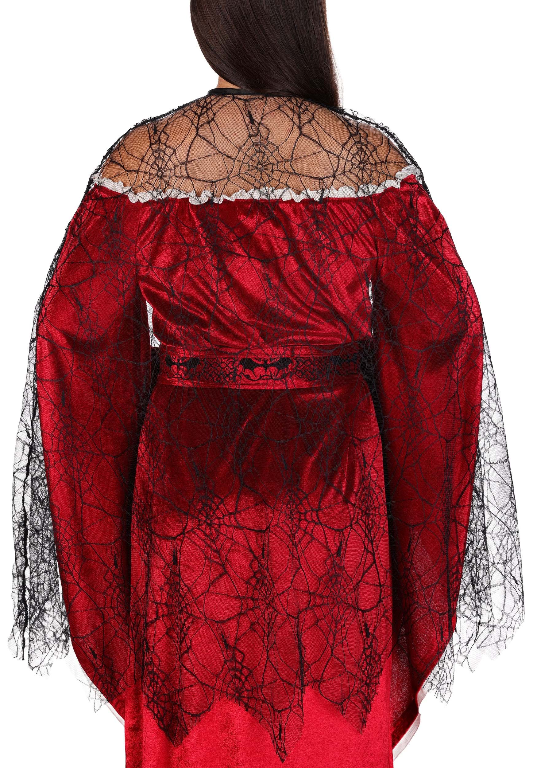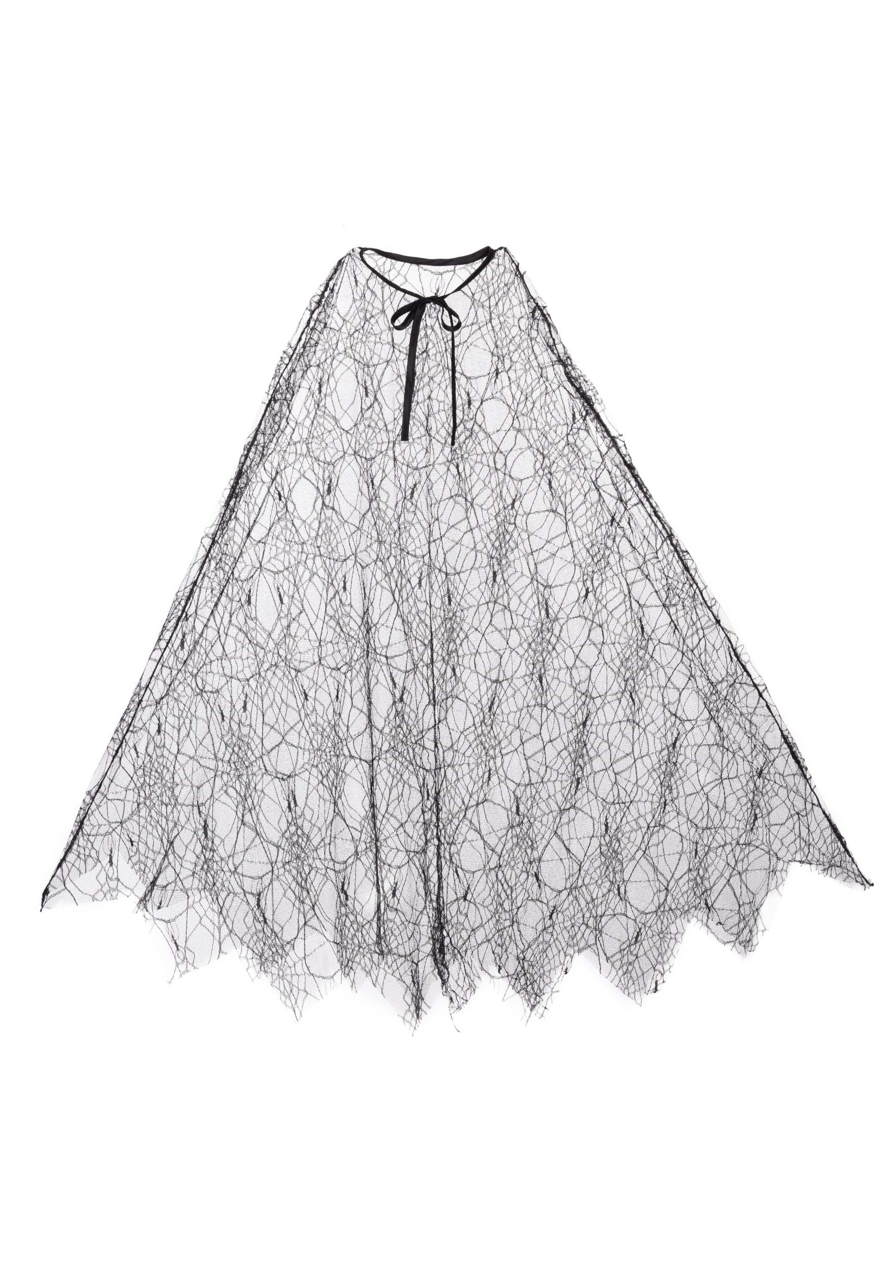 This is an exclusive Adult Black Sheer Cobweb Costume Cape.