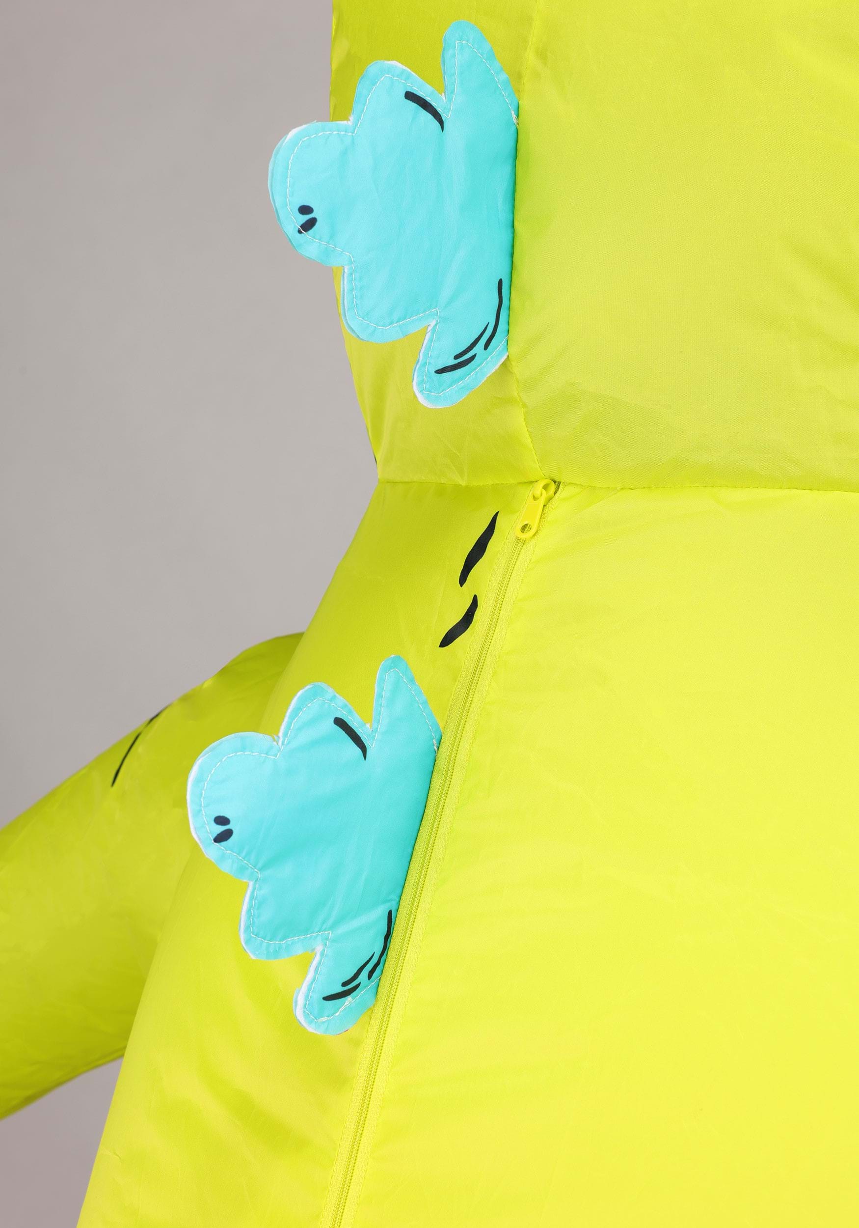 This inflatable Reptar costume is made of lightweight polyester windbreaker fabric that inflates with the help of a battery-powered fan at the back. It zips up easily and seals in all the dino goodness, including elastic at the wrists and ankles to keep the air in and the fun going. The gloves are attached and roomy enough for expressive claw-waving.