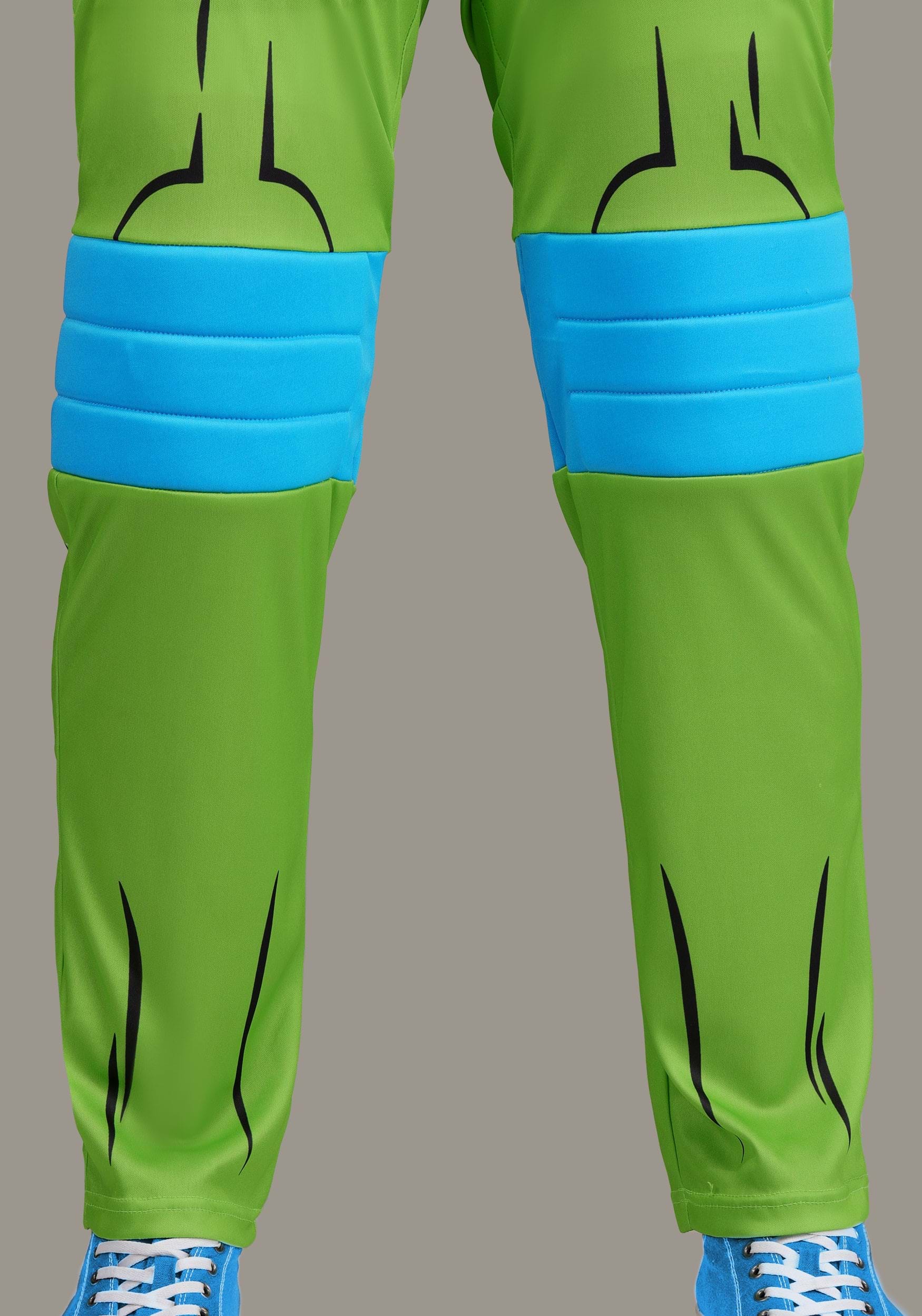 This officially licensed TMNT costume comes with a full jumpsuit, foam-backed mask, and detachable turtle shell—all designed to reflect Leonardo’s iconic look from the ‘90s cartoon. The polyester jumpsuit features printed chest and muscle detailing, plus a brown belt across the waist with a big blue “L” front and center, so there’s no confusion about which turtle’s calling the shots.