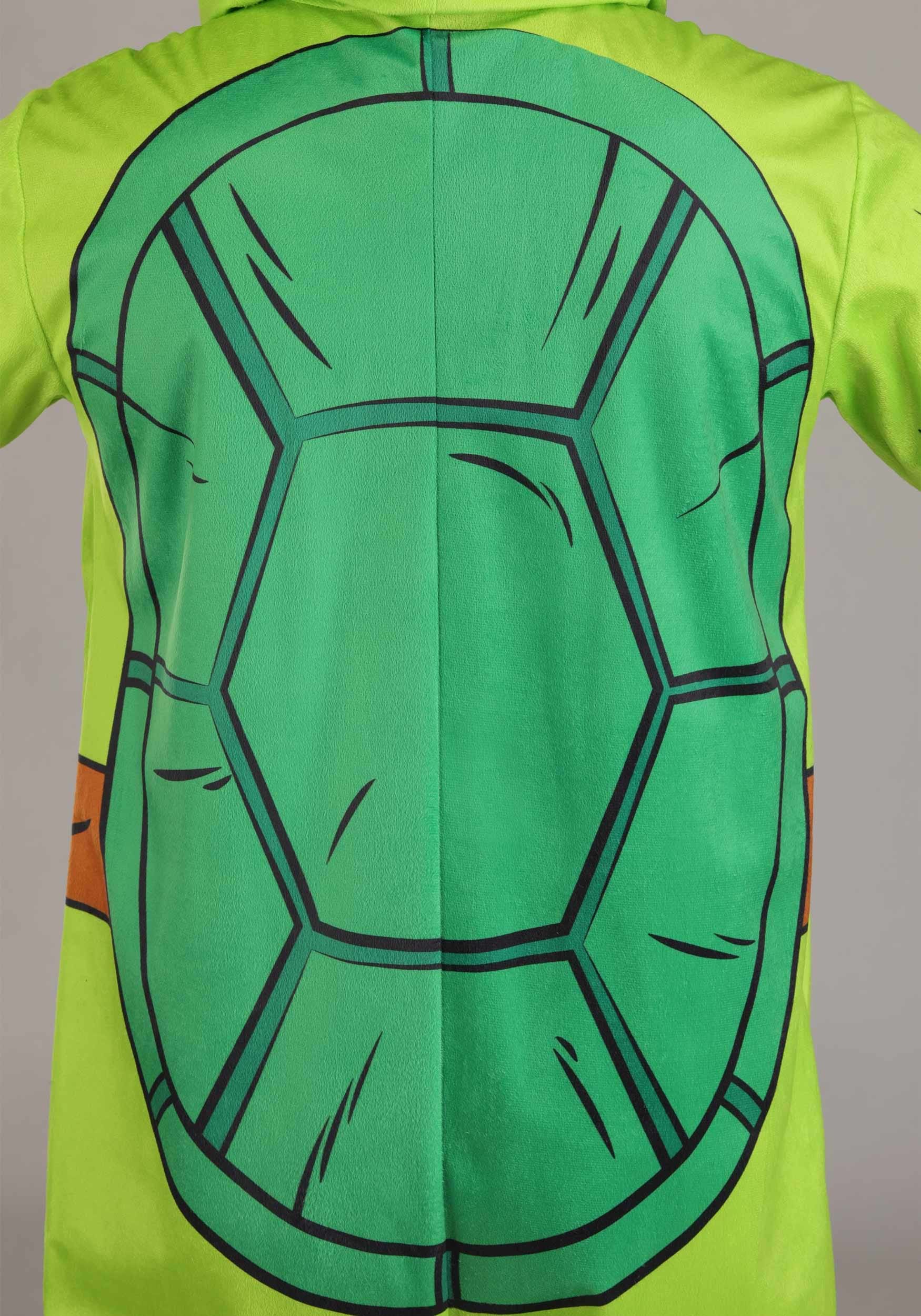 The printed design features Raph’s muscle shell torso, red arm and leg wraps, and his signature belt with the bold “R” front and center. The hood completes the look with his red bandana, printed eyes, and little side ties that flap just enough to make you feel a little cooler than everyone else in the room.