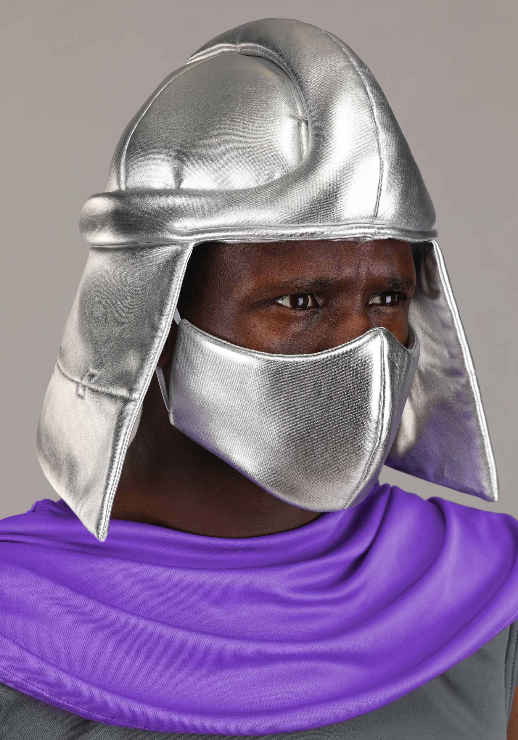 The included helmet has a foam structure covered in metallic silver fabric, giving it that signature Shredder look without the weight of actual armor. Matching foam arm guards and shin guards are strapped in place and loaded with sculpted “blades” that are fierce, flexible, and foam-filled for safety (and style).