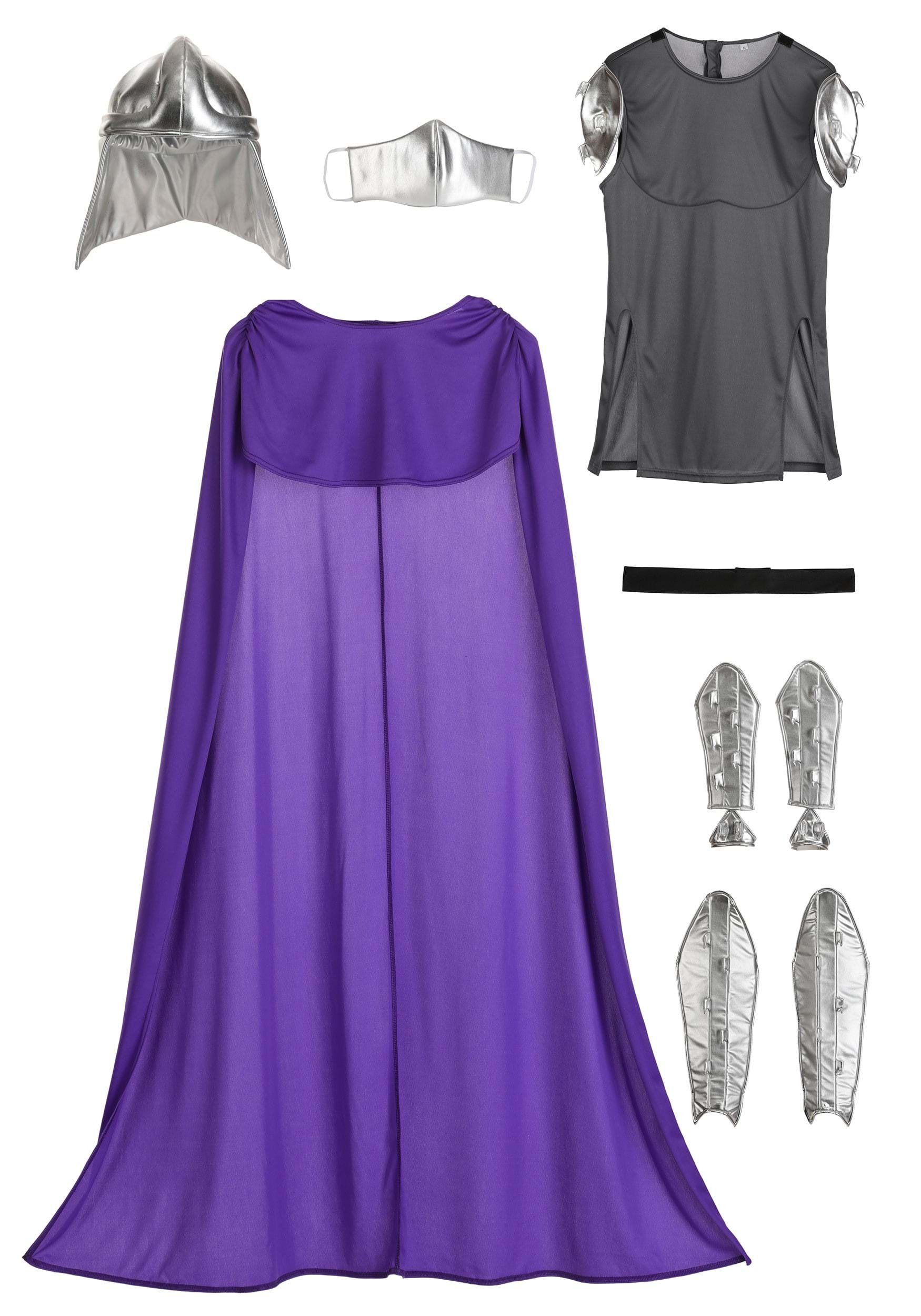 This officially licensed costume includes a tunic, cape, pants, and belt, all crafted from soft knit jersey fabric for comfort that lasts through even the most intense sewer-side showdowns. The tunic features attached shoulder guards, while the matching purple cape drapes dramatically down your back—ideal for windy rooftop exits or overly theatrical monologues.