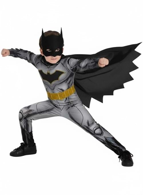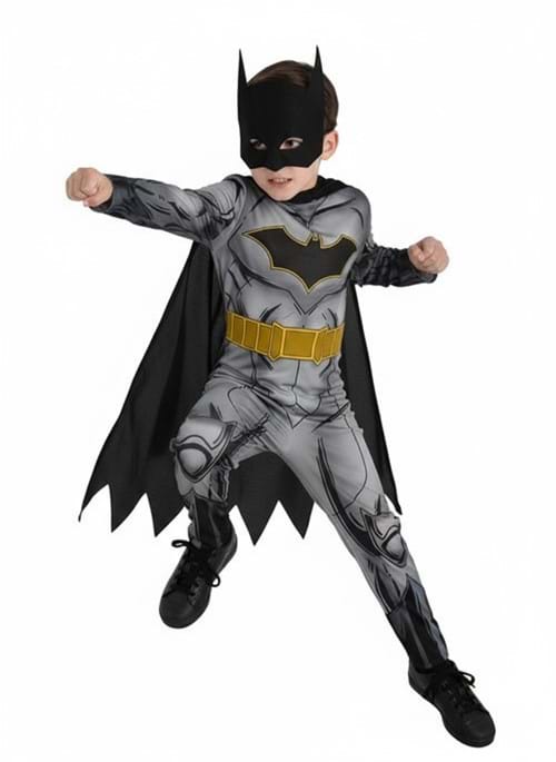 This officially licensed Batman costume includes all the basics your little hero needs to start patrolling the living room. The jumpsuit is all one piece, so suiting up is quick and easy—ideal for when the Joker’s up to something again and there’s no time to waste. The suit is grey with printed muscle and armor detailing that says, “I don’t skip Bat-leg day.” The Bat symbol is front and center, and the yellow foam belt gives off serious utility-belt energy (minus the grappling hook).
