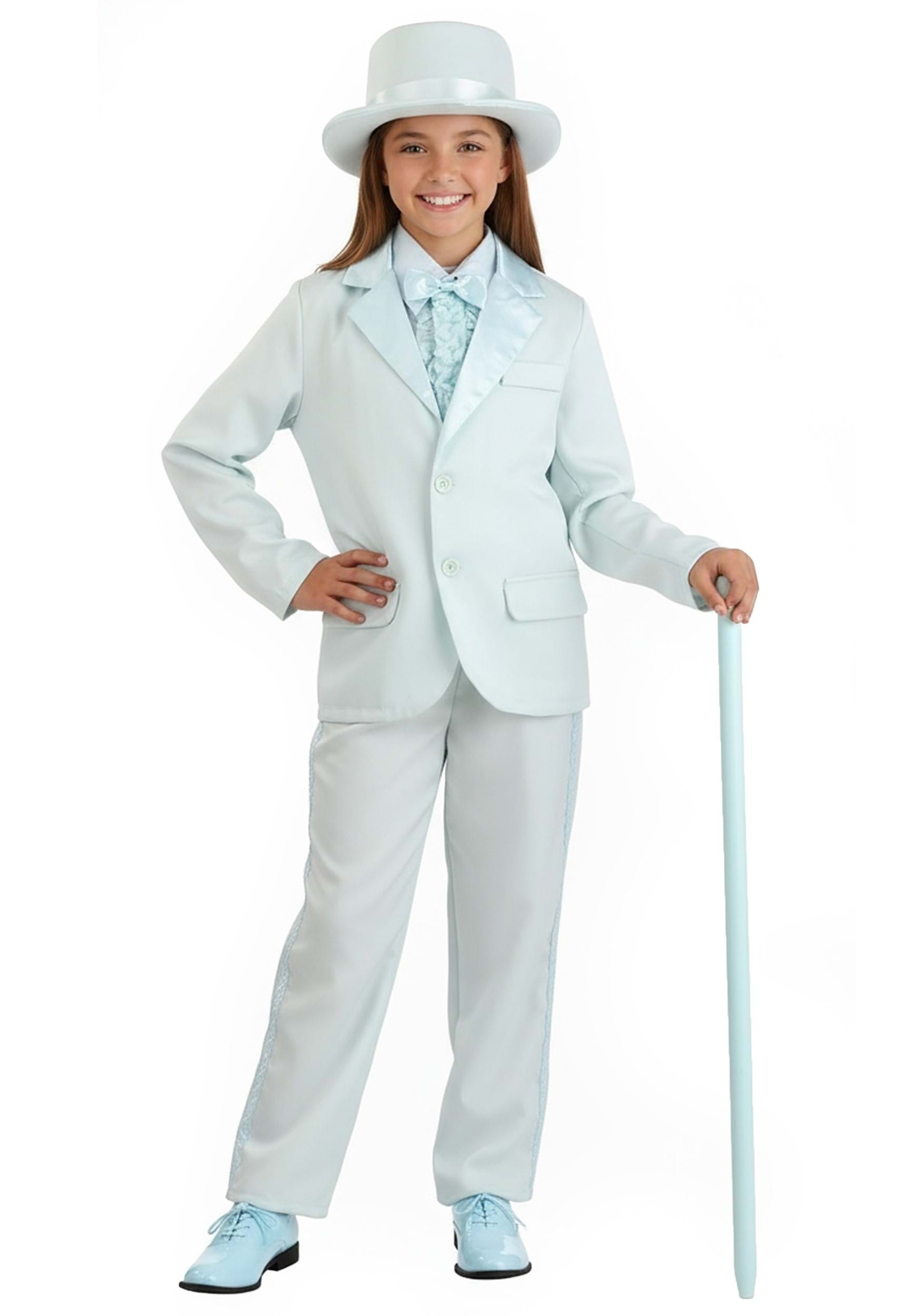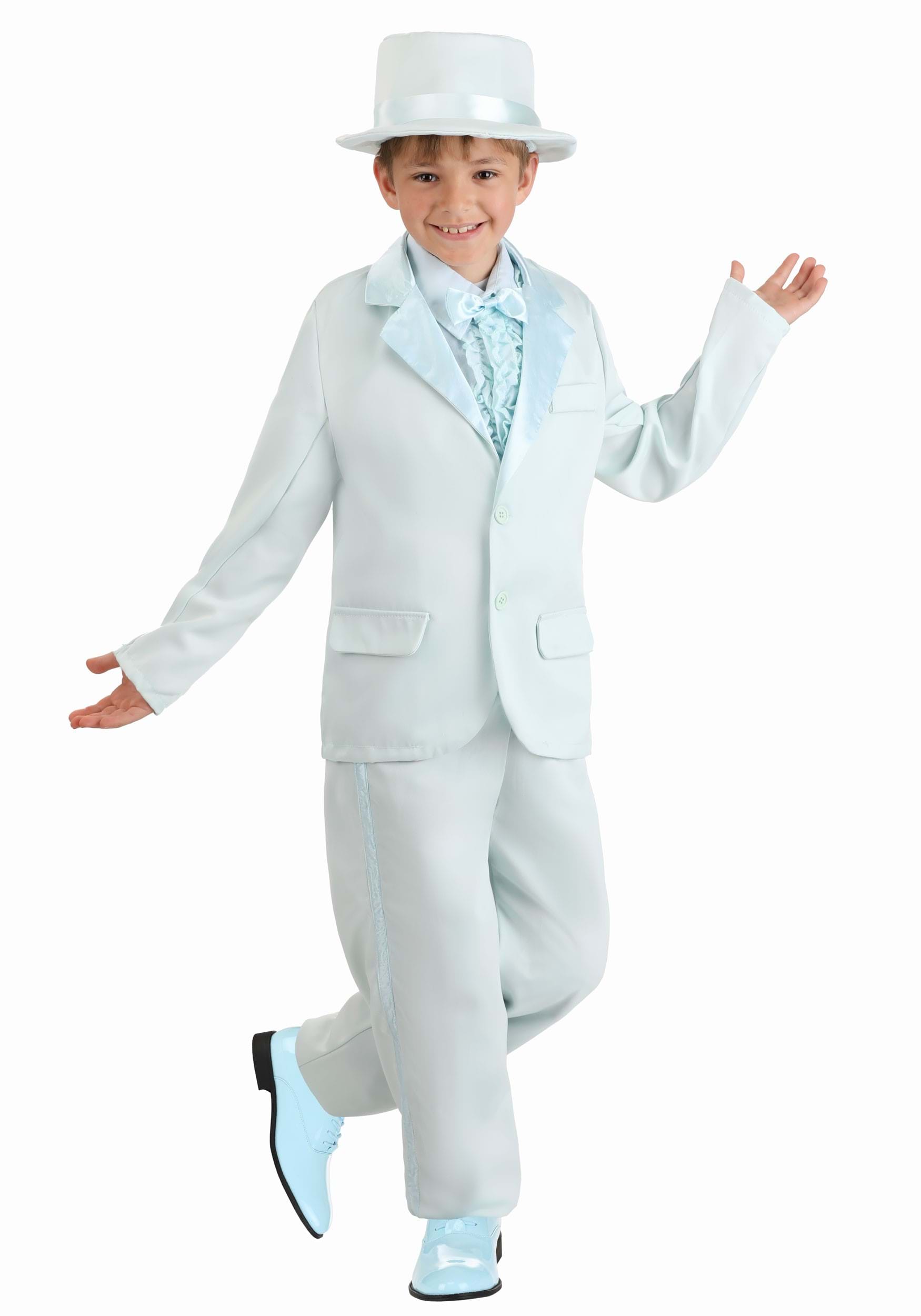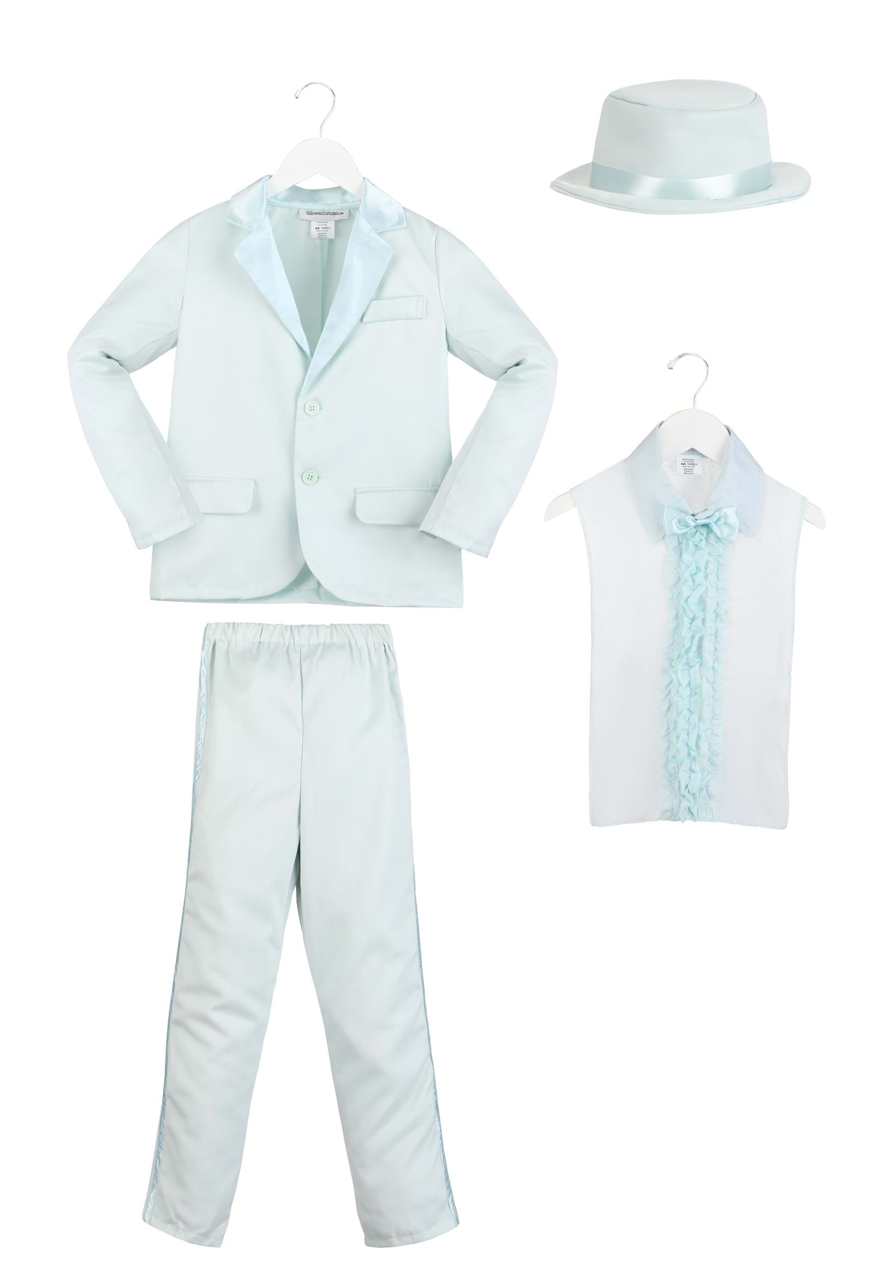 We’ve seen your kid; he possesses so much swagger that it is actually alarming. You must feel like you are living with a classic Hollywood movie star or a timeless tycoon--and that’s just before breakfast! This Child Blue Tuxedo will allow him to dress up to his heart’s desire, day after day (not to mention it will also make a great Halloween look!). He’s old school, you see--he still hopes to live in a world where people put on their finery for the opera, dress to the nines for the theatre, doll up for dinner, and travel in elegant style. He wants to hop a train and rendezvous in the dining car with a cast of fabulous and unexpected characters; he longs to feel the red carpet beneath his feet, wherever he goes.>