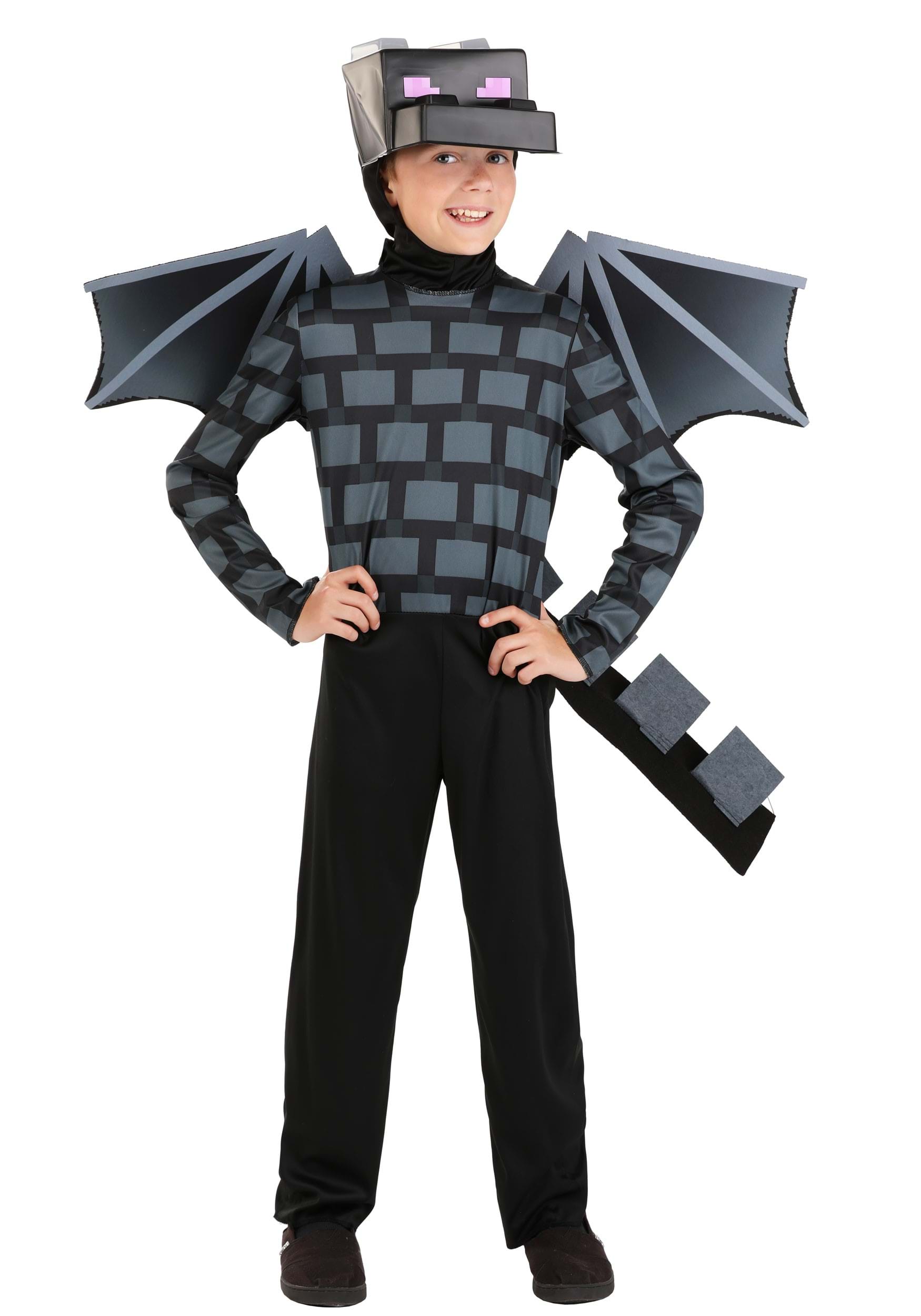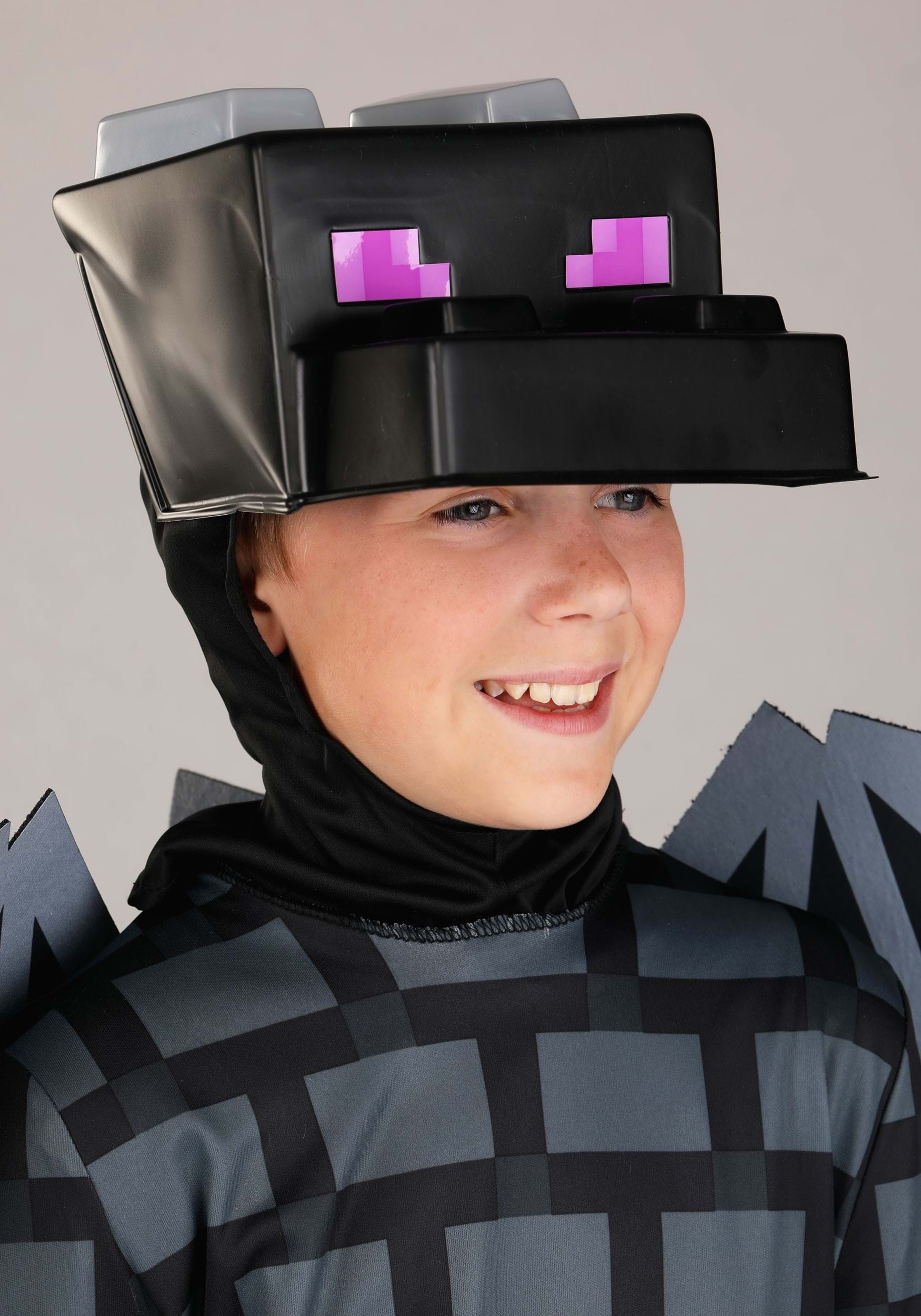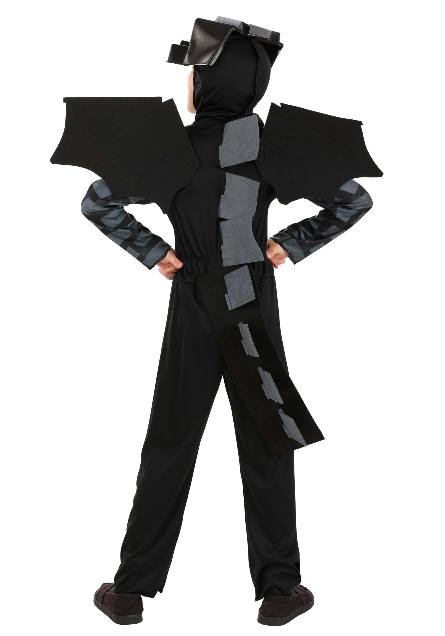 Let your child unleash their inner dragon with this officially licensed Minecraft costume. Featuring a detailed black jumpsuit, a felt tail with block spines, and impressive foam wings, this costume brings the fearsome Ender Dragon to life. The included plastic dragon headpiece adds the finishing touch for a truly authentic look.