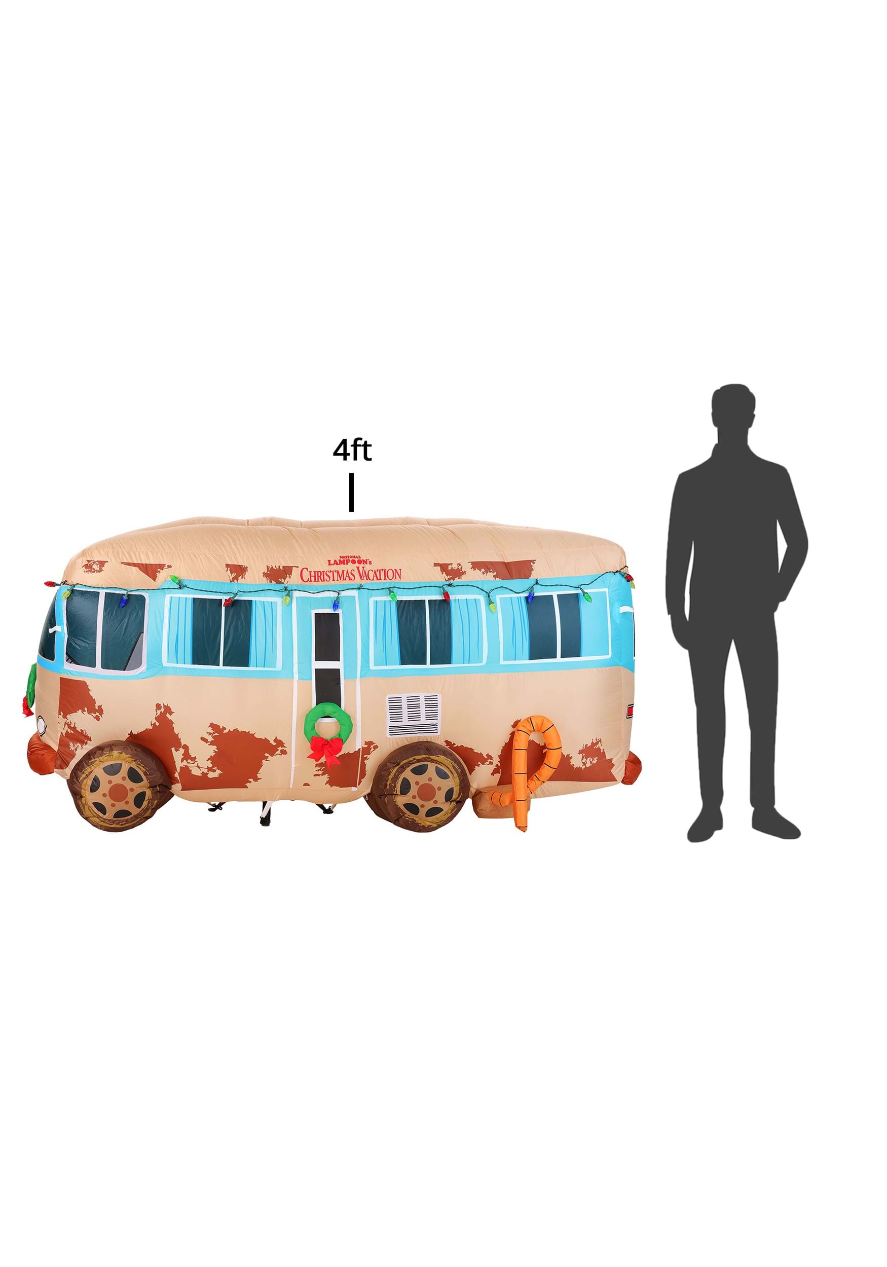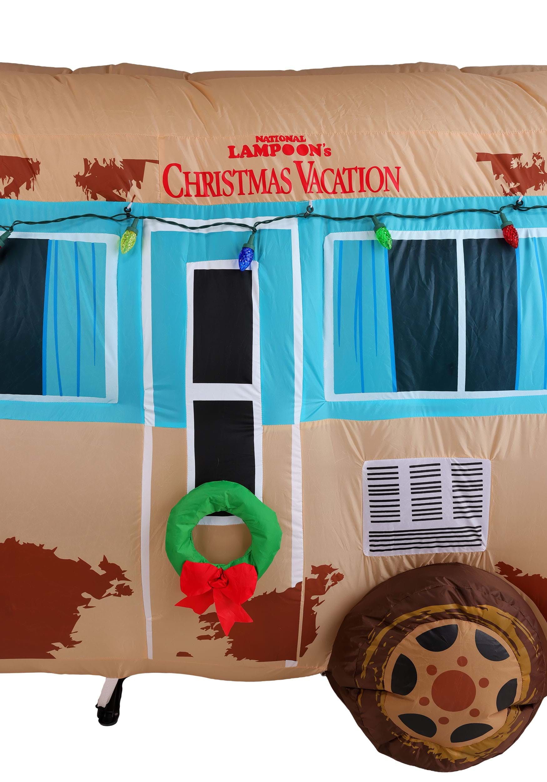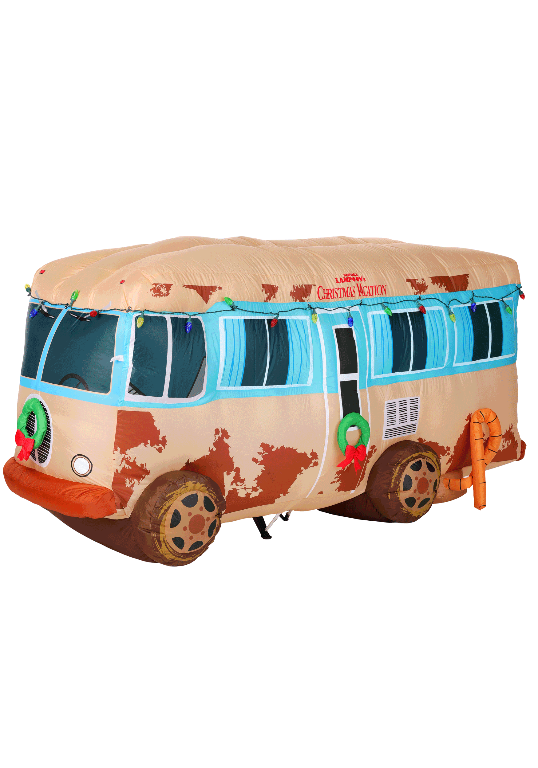 Standing tall and wonderfully tacky, this officially licensed inflatable features printed details to recreate every glorious patch of rust, duct-taped window, and questionable lifestyle choice from the film. Pre-strung multicolor lights run along the roofline, while wreaths on the front and side doors add that classy, last-minute touch only the Griswolds could pull off.