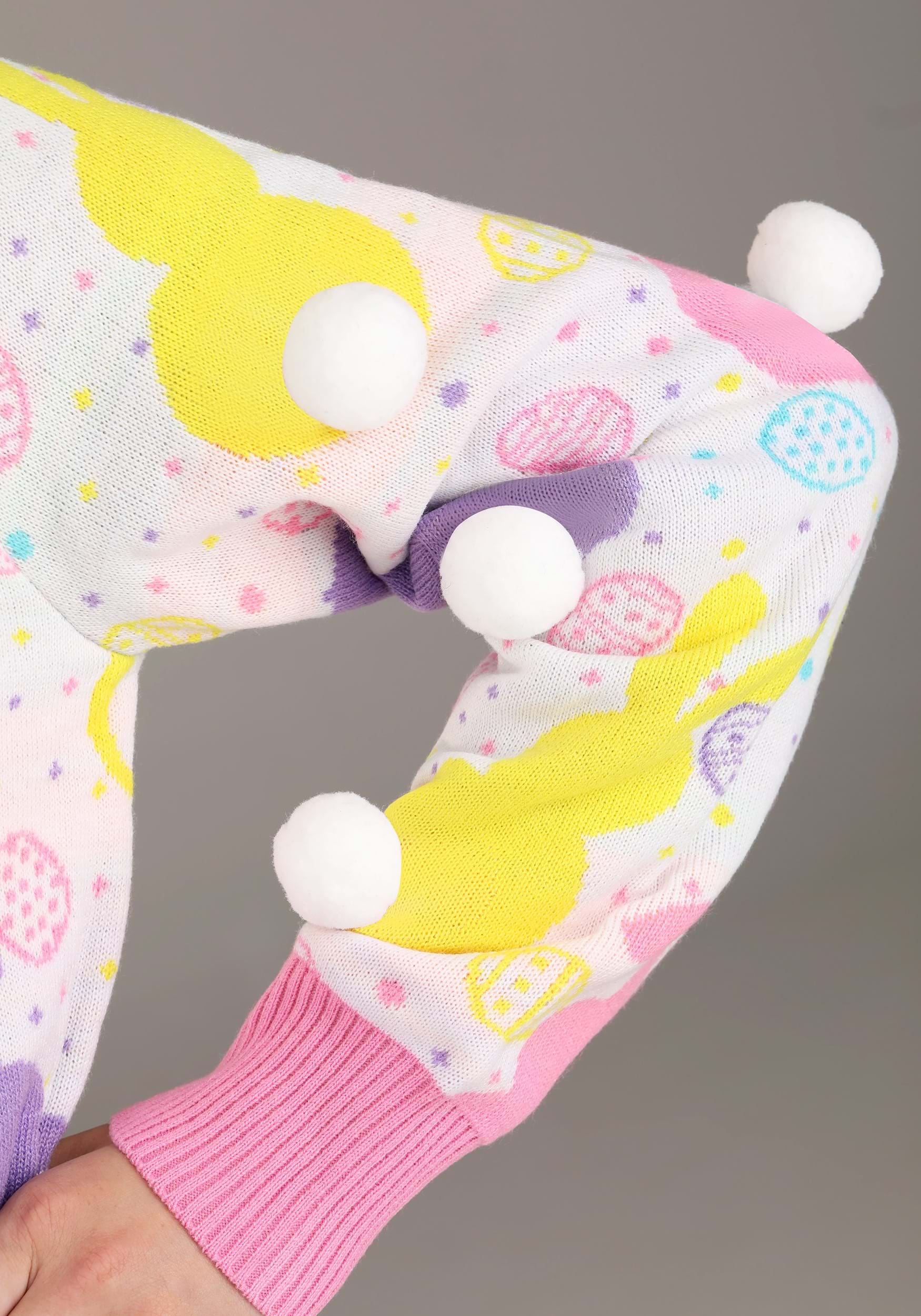 Ready to have a “hoppy” Easter? Then you’ll need this Easter Bunny Ugly Sweater! This soft top was Made By Us to help you get in the spring spirit. It features an all-over print of rabbits in four cute pastel colors. They even have real white cotton tails! The sweater also has pink rib-knit cuffs and printed Easter eggs scattered among the bunnies. You’ll be ready to hunt down all the Easter eggs you can find in this cozy sweater! Don’t forget to check out our collection of exclusive ugly sweaters so you can have one (or several) for every holiday you celebrate!