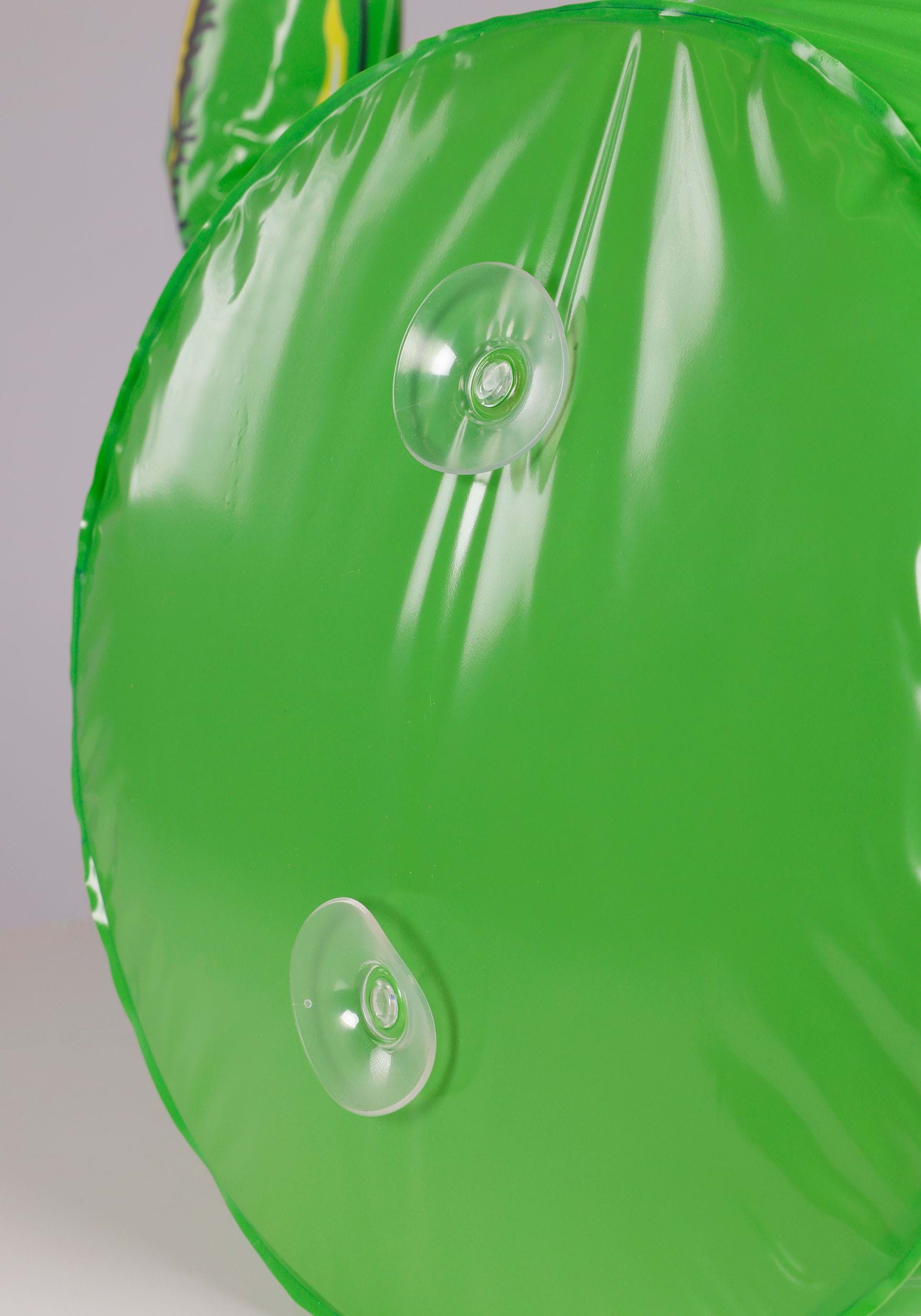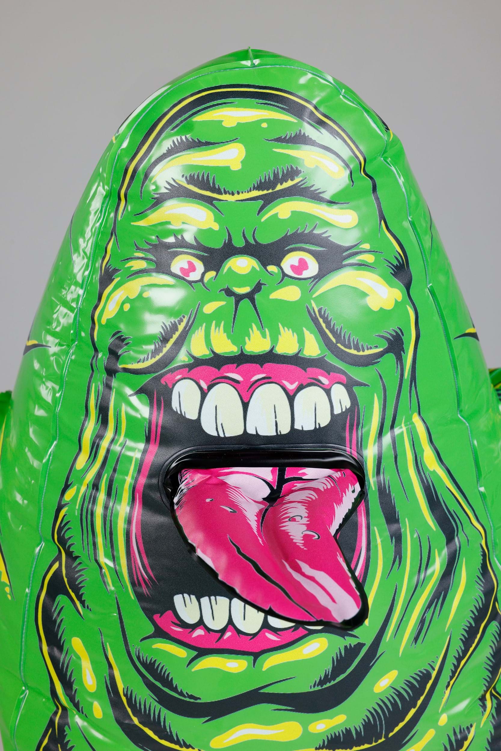 - 2 piece, blow up Slimer clings to the window with plastic suction cups
