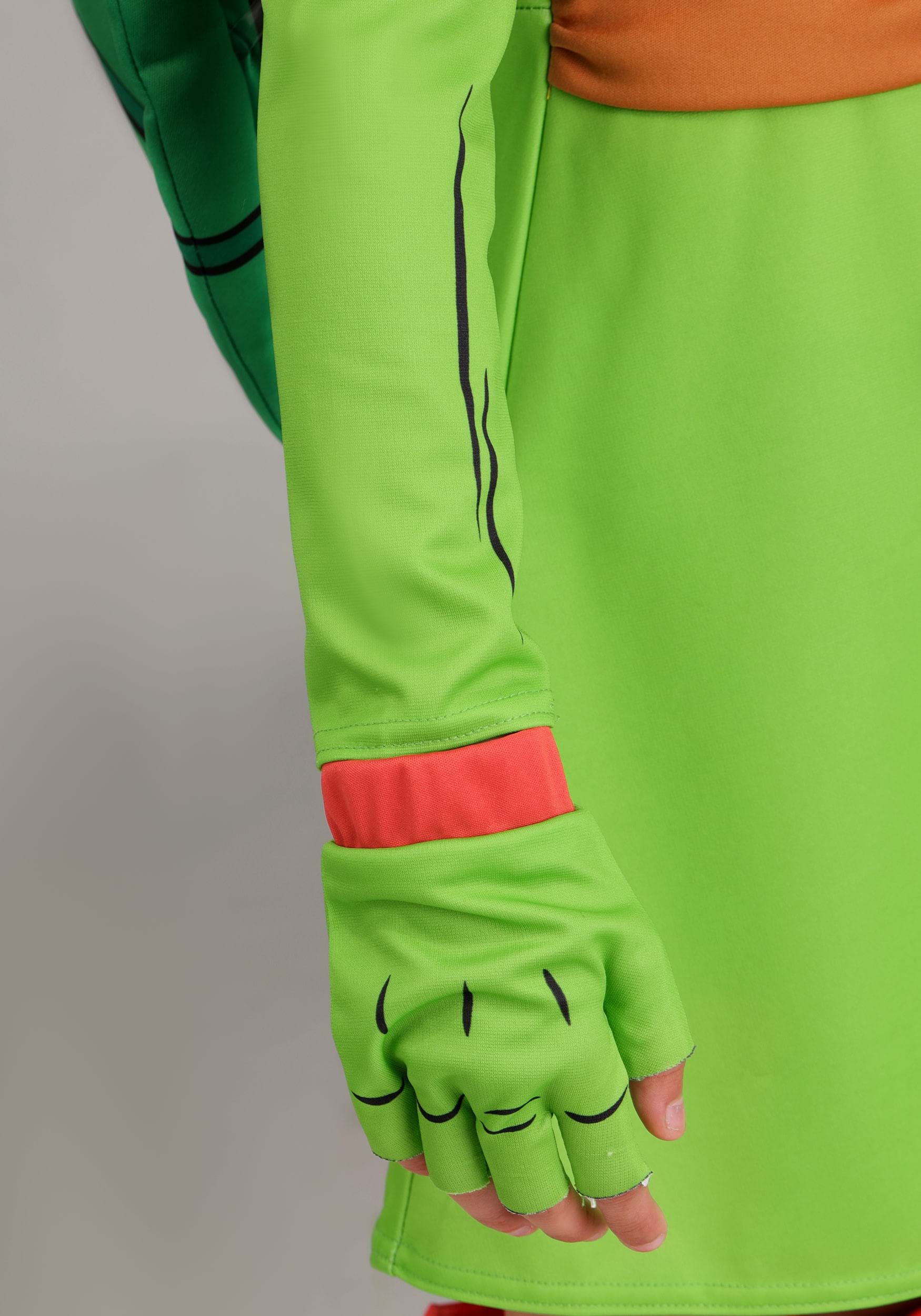 Red accessories tie it all together—literally. The included gloves, elbow-length arm bands, and knee pads all coordinate with the classic red mask that brings Raph’s intense vibe to life. It’s comfy enough for running around the playground, and cool enough for costume parties, trick-or-treating, or full-on turtle cosplay.