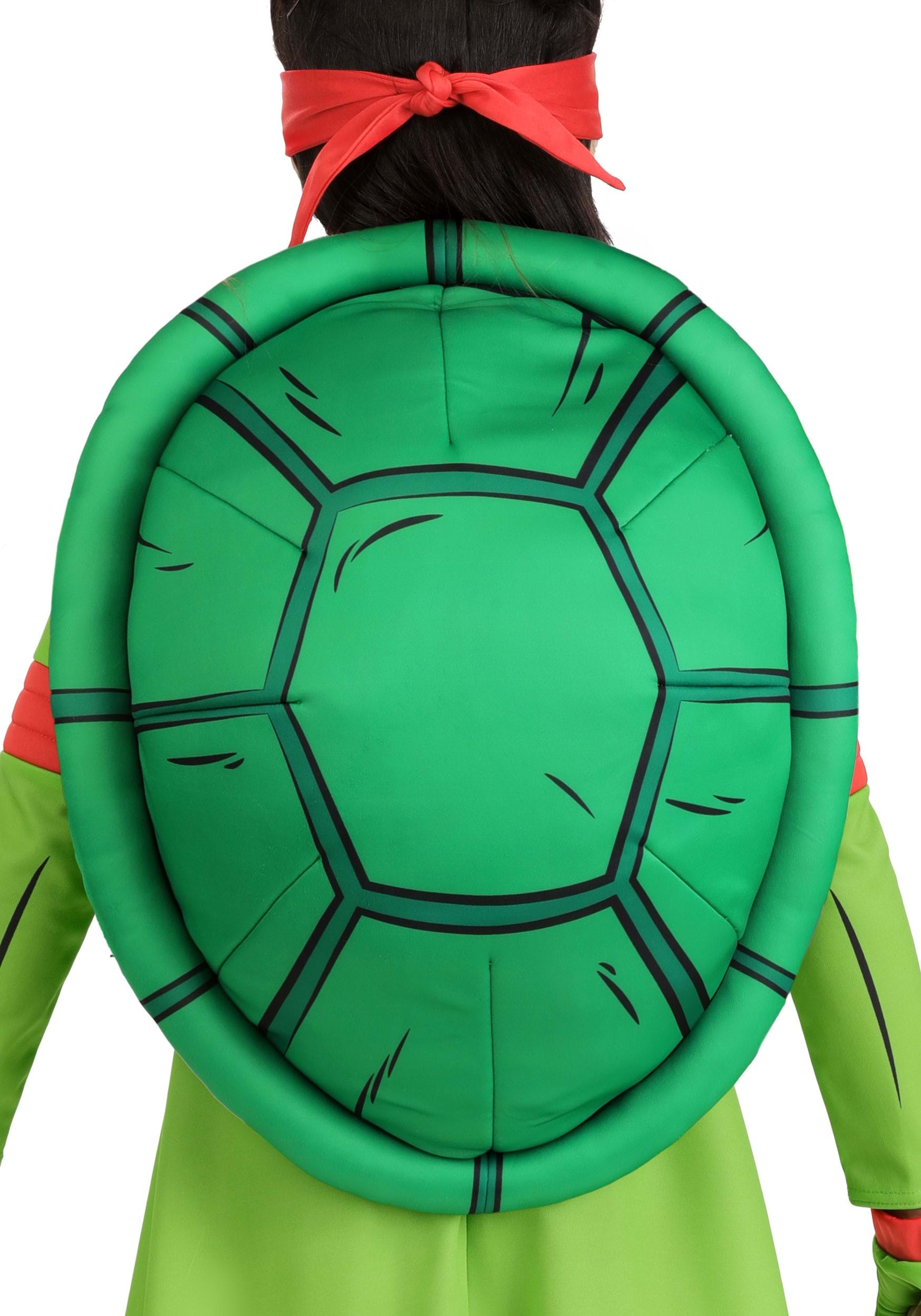 This officially licensed costume starts with a soft yet sturdy ponte knit and jersey knit dress, printed with Raphael’s signature turtle shell on the front and a bold red “R” belt graphic around the waist. It zips up the back for easy changes, which is great when there are pizzas to eat and baddies to chase. The included foam-backed shell attaches to the back to complete the transformation into your kiddo’s favorite hot-headed hero.