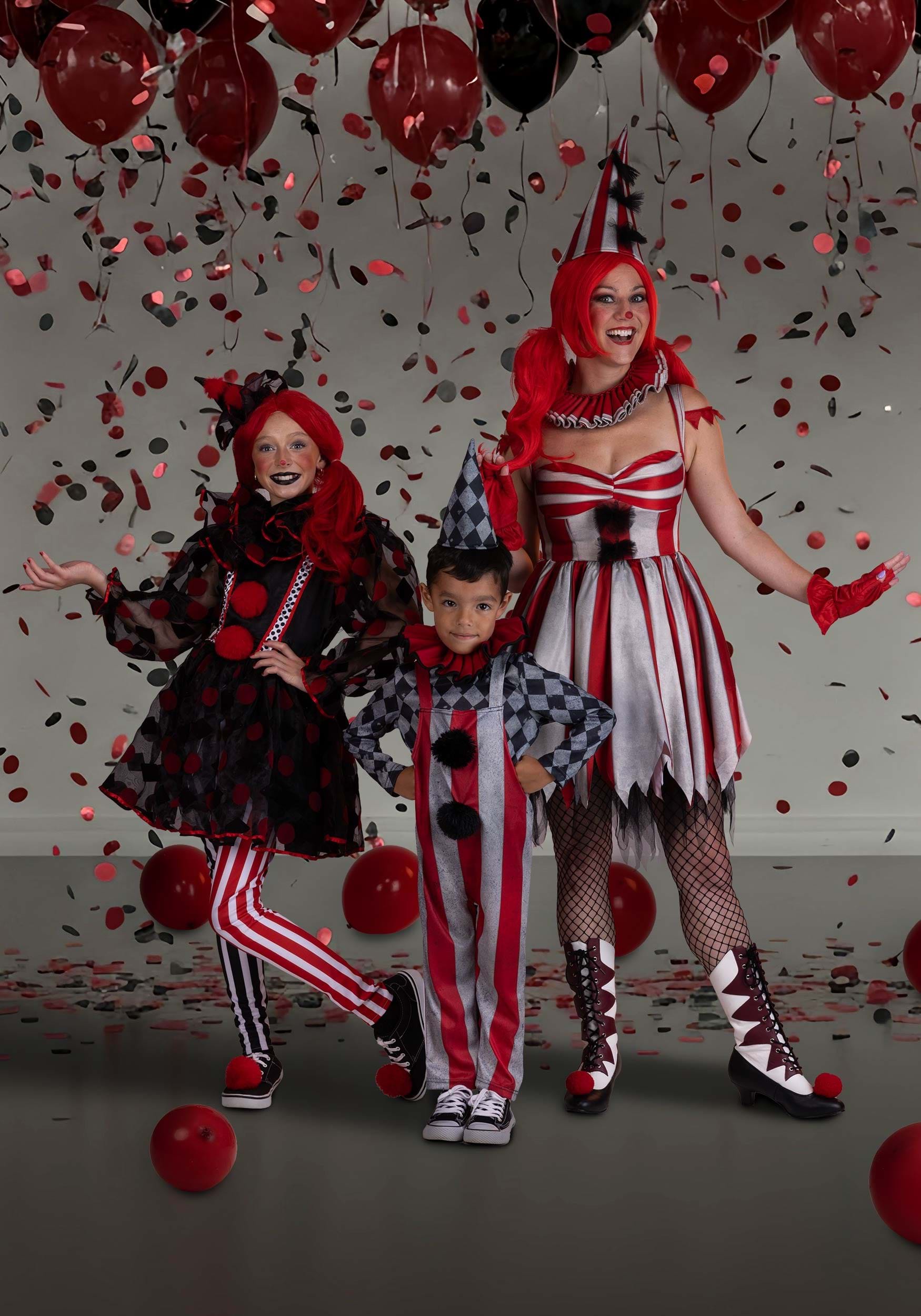 - Red poms sewn on the front, decorative satin trim, elastic waistband
