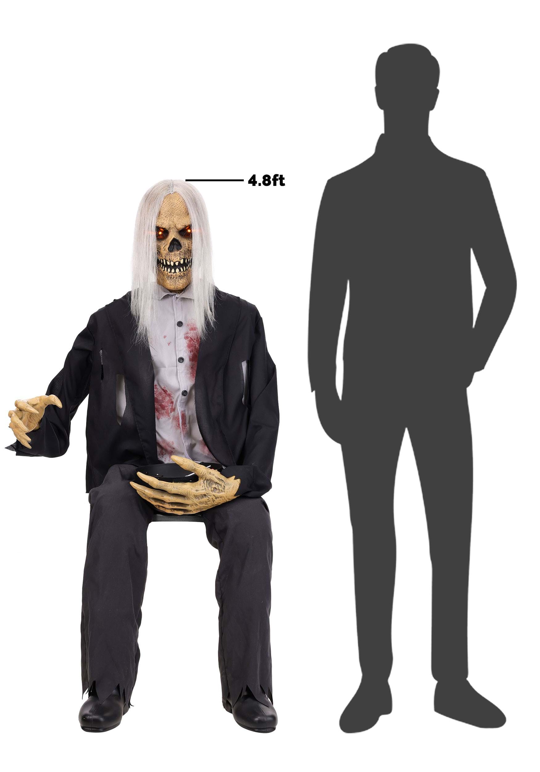Grabby Gutfried doesn't ask much. Just a prominent spot on your porch, an extension cord, and the chance to startle the neighborhood one trick-or-treater at a time. This five-foot seated nightmare has been waiting patiently in whatever dimension animated corpses come from, and he's absolutely thrilled to finally have a job. His skeletal hands reach out with the jerky enthusiasm of someone who really, really wants you to take some candy. Or maybe your soul. It's unclear.