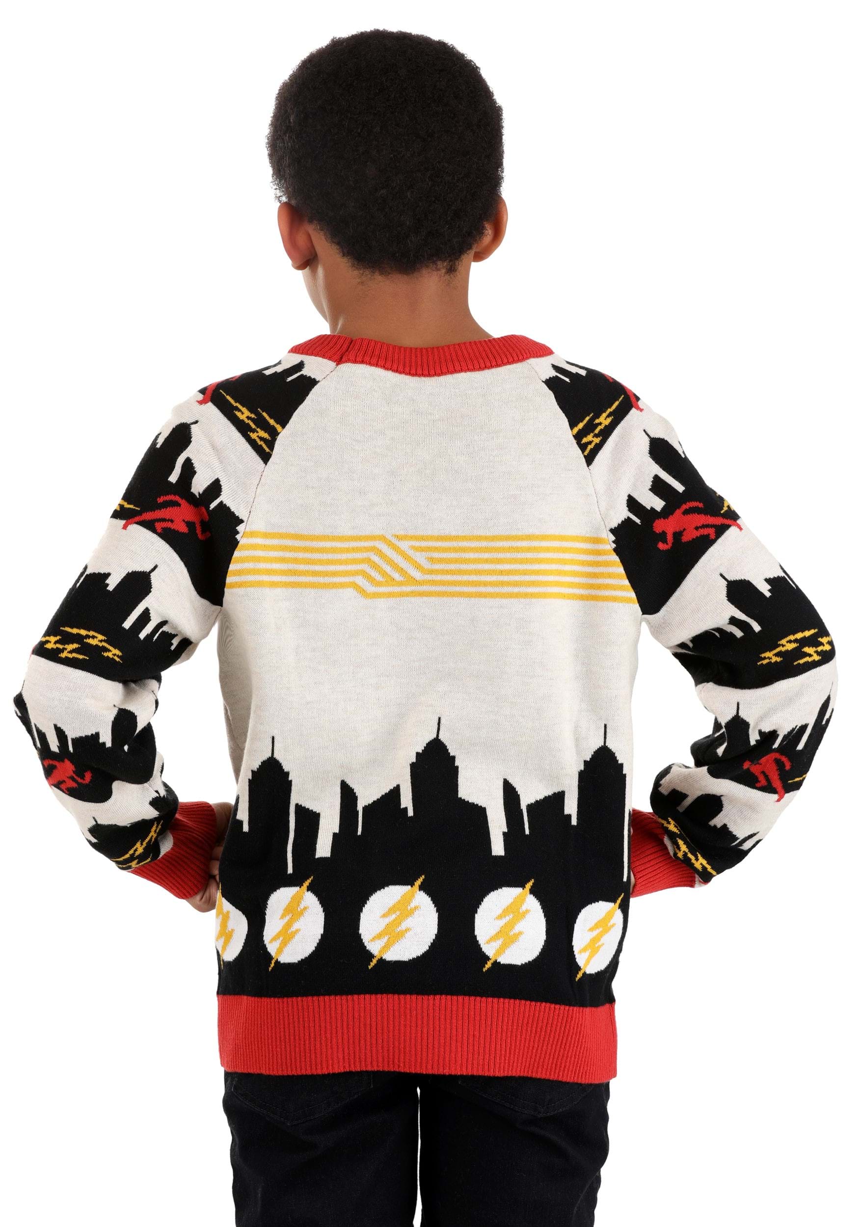 Fans of DC Comics and the DC movies will immediately recognize Barry Allen in his iconic running pose. This ugly sweater is not only made by us, but officially licensed, so our designers definitely took their time with his costume apparel. Run into the holiday season in style and check out The Flash Ugly Sweater for Kids, exclusively made by us.