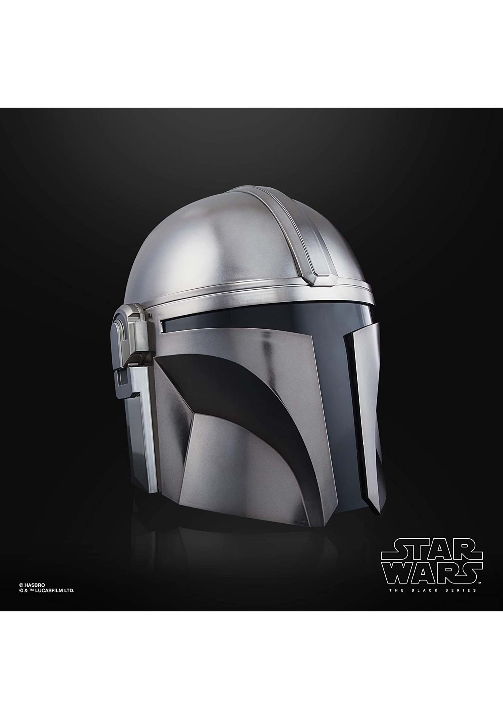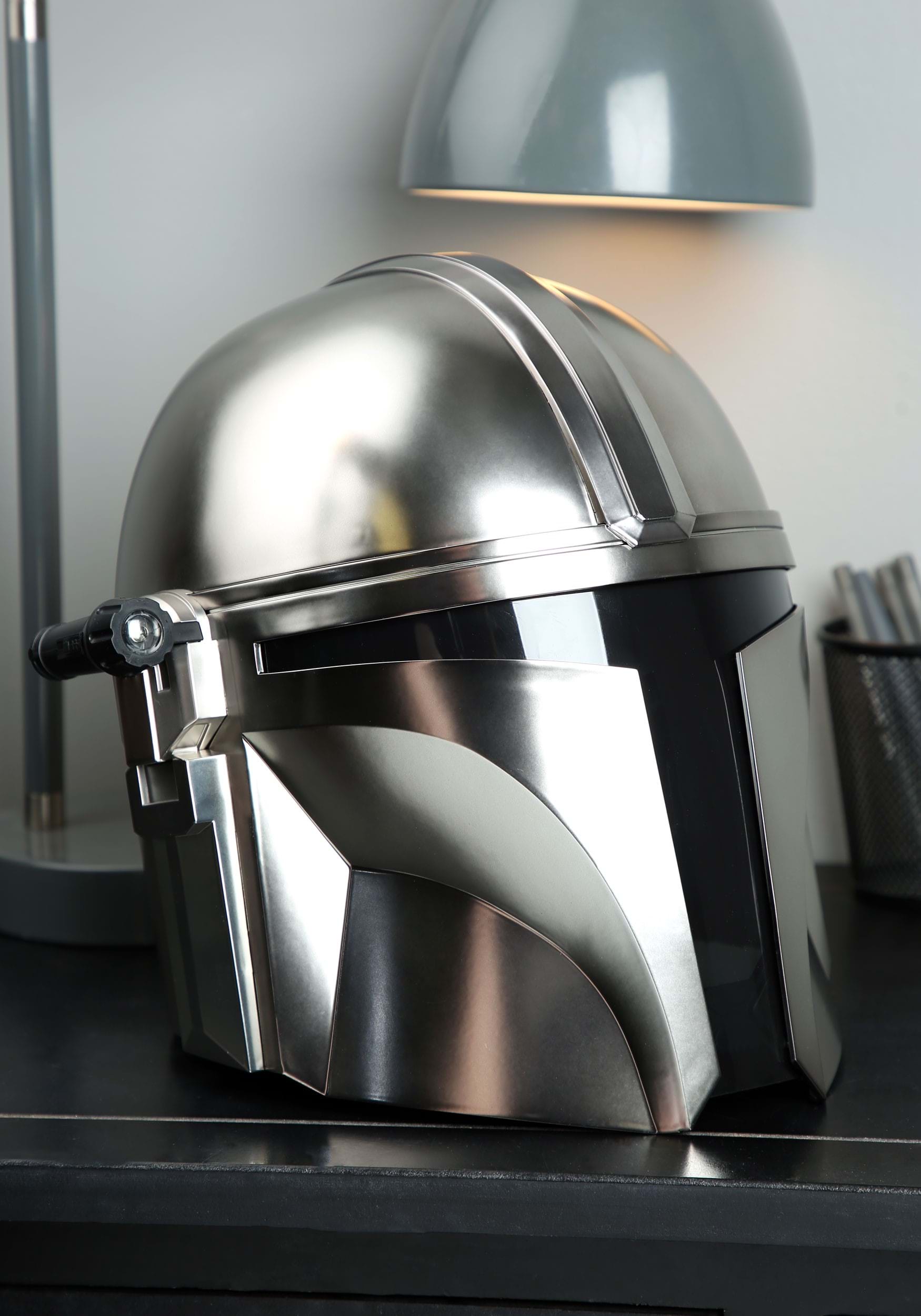 This is a Star Wars The Mandalorian The Black Series Electronic Helmet.