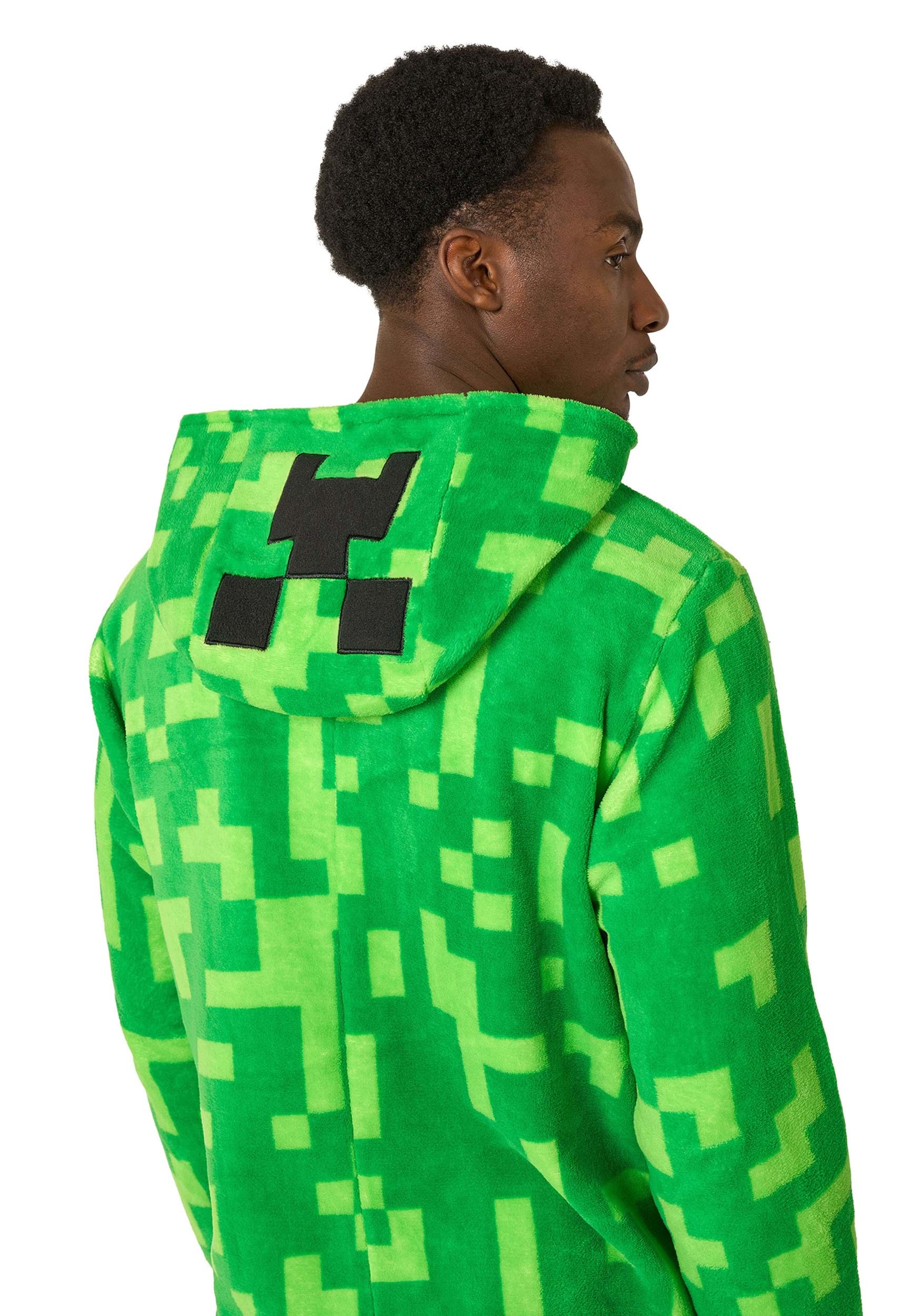 The hood features a printed Creeper face, turning your noggin into the most feared mob in the Overworld. Rib-knit cuffs and ankles keep the fit snug and comfy, whether you’re lounging on the couch or silently lurking in doorways for dramatic effect. Just add your favorite slippers and you're ready to chill—or chill and hiss.