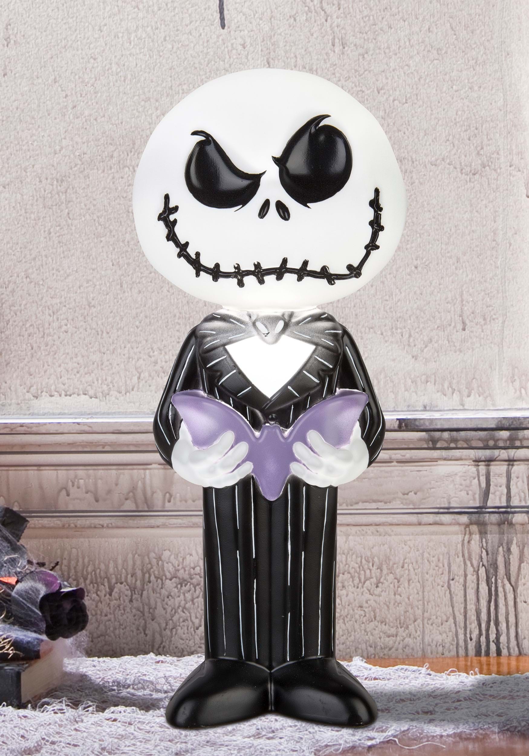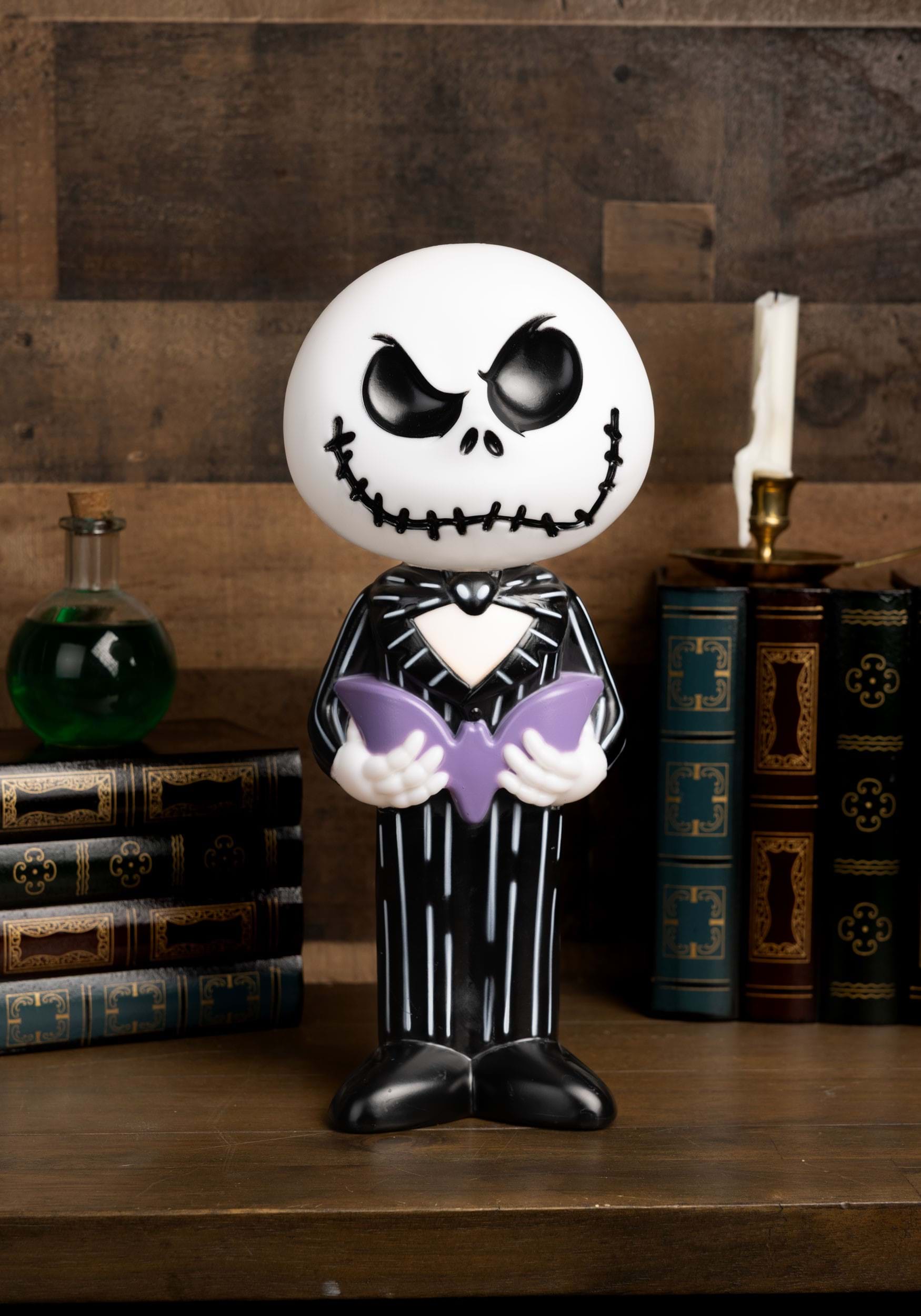 Need a little spooky charm and skeletal style for your seasonal setup? This 14-Inch Nightmare Before Christmas Blow Mold Jack Skellington Decoration brings the one and only Pumpkin King to your tabletop, shelf, or mantel—complete with pinstripes, a stitched-up smile, and a purple bat in hand (because of course he accessorizes).