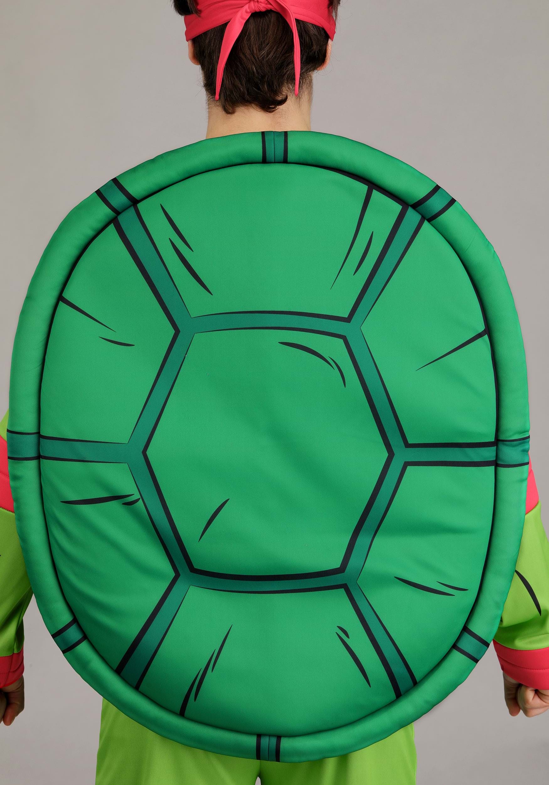 The costume comes with a soft, foam-backed turtle shell that attaches to the back of the jumpsuit with hook and loop fasteners. The shell gives your silhouette that classic Ninja Turtle shape and stays lightweight so you can move with ease. Also included is a red foam-backed eye mask that ties around the head for a secure fit and stays comfortable through the night.