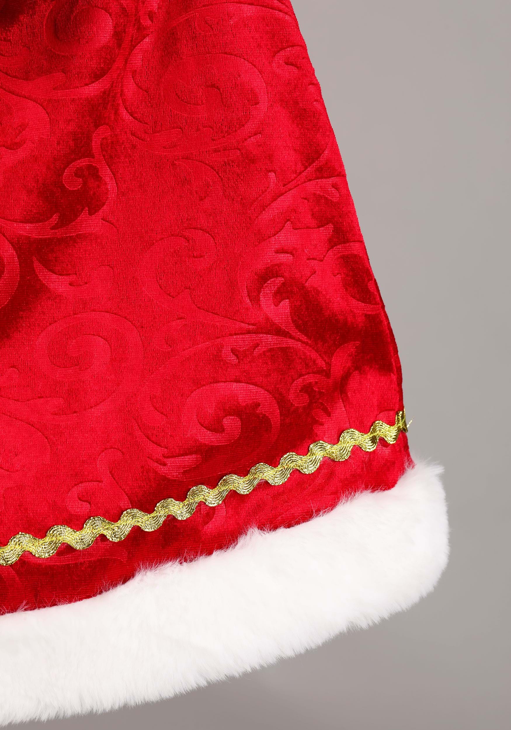 This merry ensemble starts with a dress that’s doing the most in the best way. The bodice features deep green velvet sleeves and side panels, trimmed in plush white faux fur, with a rich red jacquard front that brings major “head elf in charge” energy. The faux leather belt is sewn in and cinches at just the right spot, and the back zipper keeps everything secure while you're out being jolly and efficient.