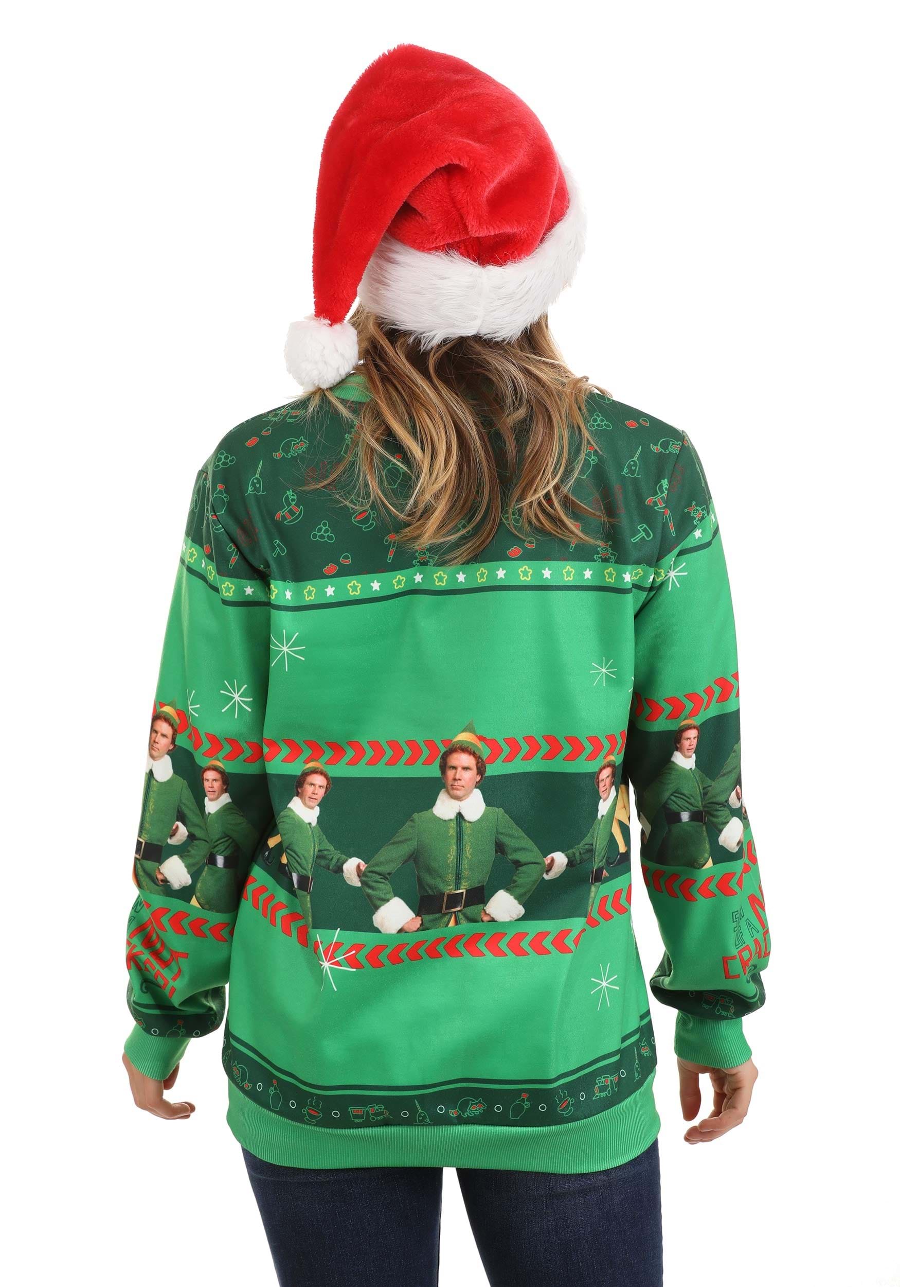 We teamed up with Warner Brothers to produce this Elf Ugly Christmas Sweatshirt which makes it authentic Elf merchandise. Featuring a slick sublimated design, the all-over artwork features photo-realistic images right from the movie. That includes the super-sized face of Buddy the Elf right on the chest along with "Santa's Coming" is text to really get the point across! A sweatshirt fit and unisex sizing makes it a great choice for any Elf fan.
