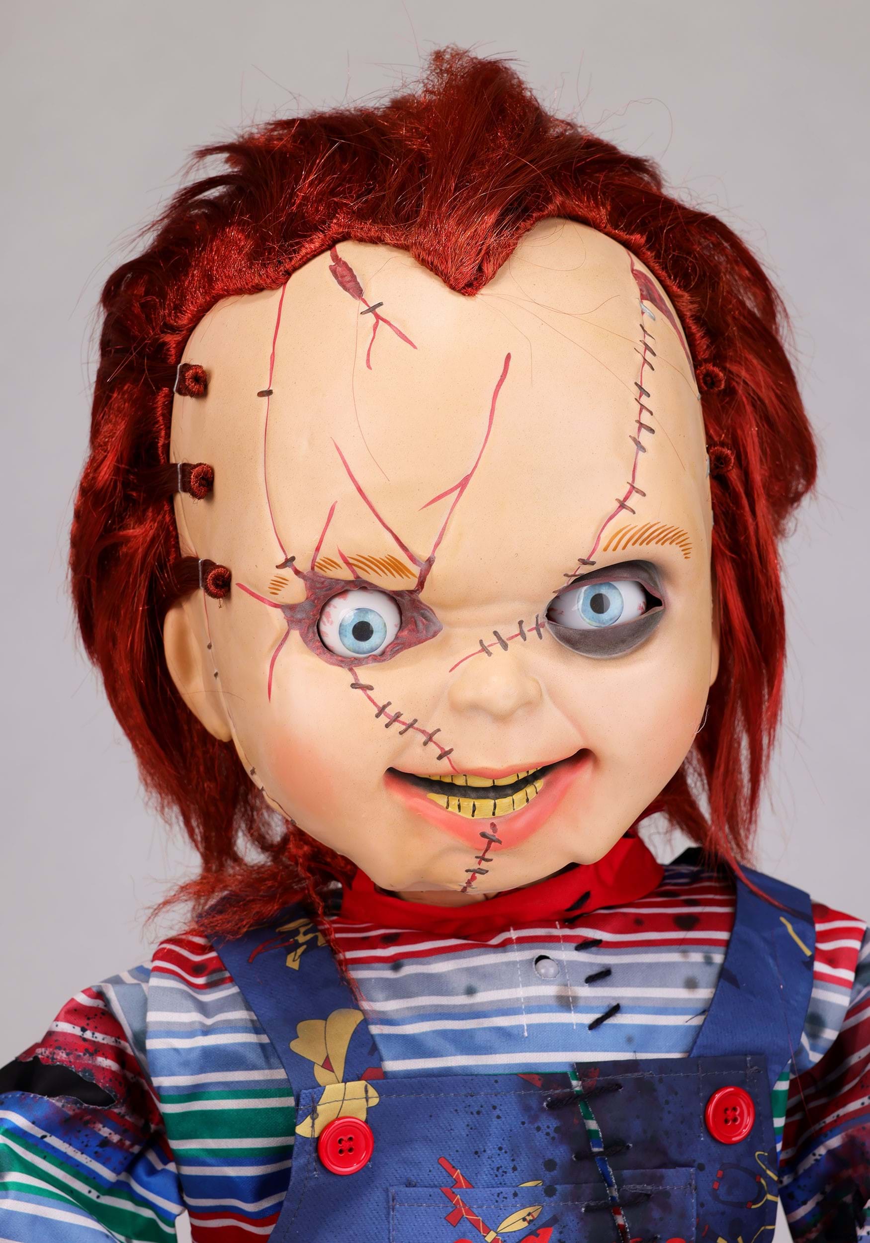 This officially licensed Chucky animatronic comes with everything you need to build one disturbingly cheerful nightmare machine. When fully assembled, he stands 3.5 feet tall and includes a molded plastic head and hands, foam-covered arms, and his signature overalls-and-stripes look made from polyester fabric. Assembly takes about 45 minutes, emotionally recovering may take longer.