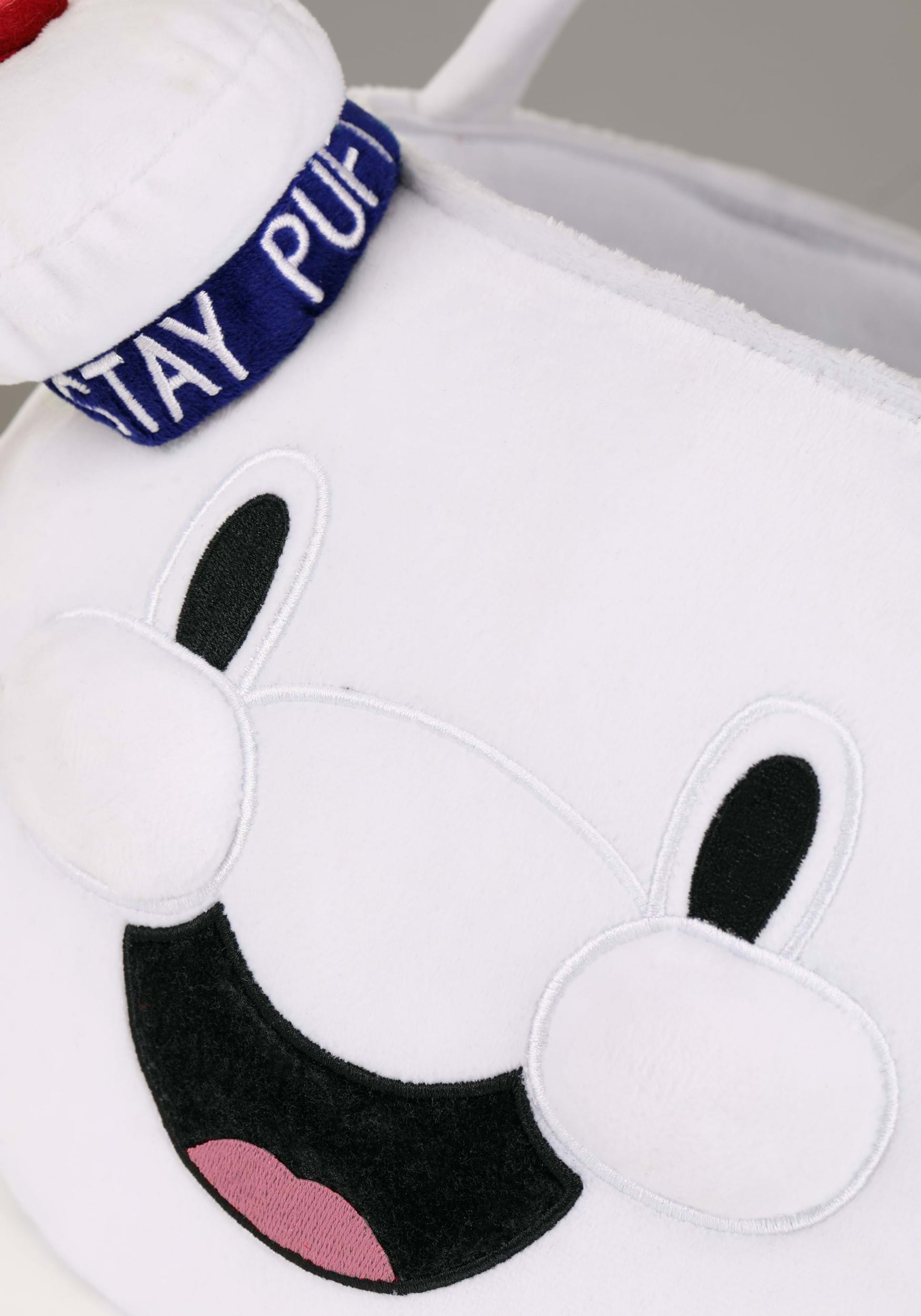 Inspired by Gozer the Gozerian's transformation into a monster, this Ghostbusters treat bucket is shaped like Stay Puft's face. It's made out of a soft, velour material and satin fabrics. The fiberfill stuffing helps give it a plump, marshmallow-like appearance. It also has embroidered facial features and a little sailor hat on top!