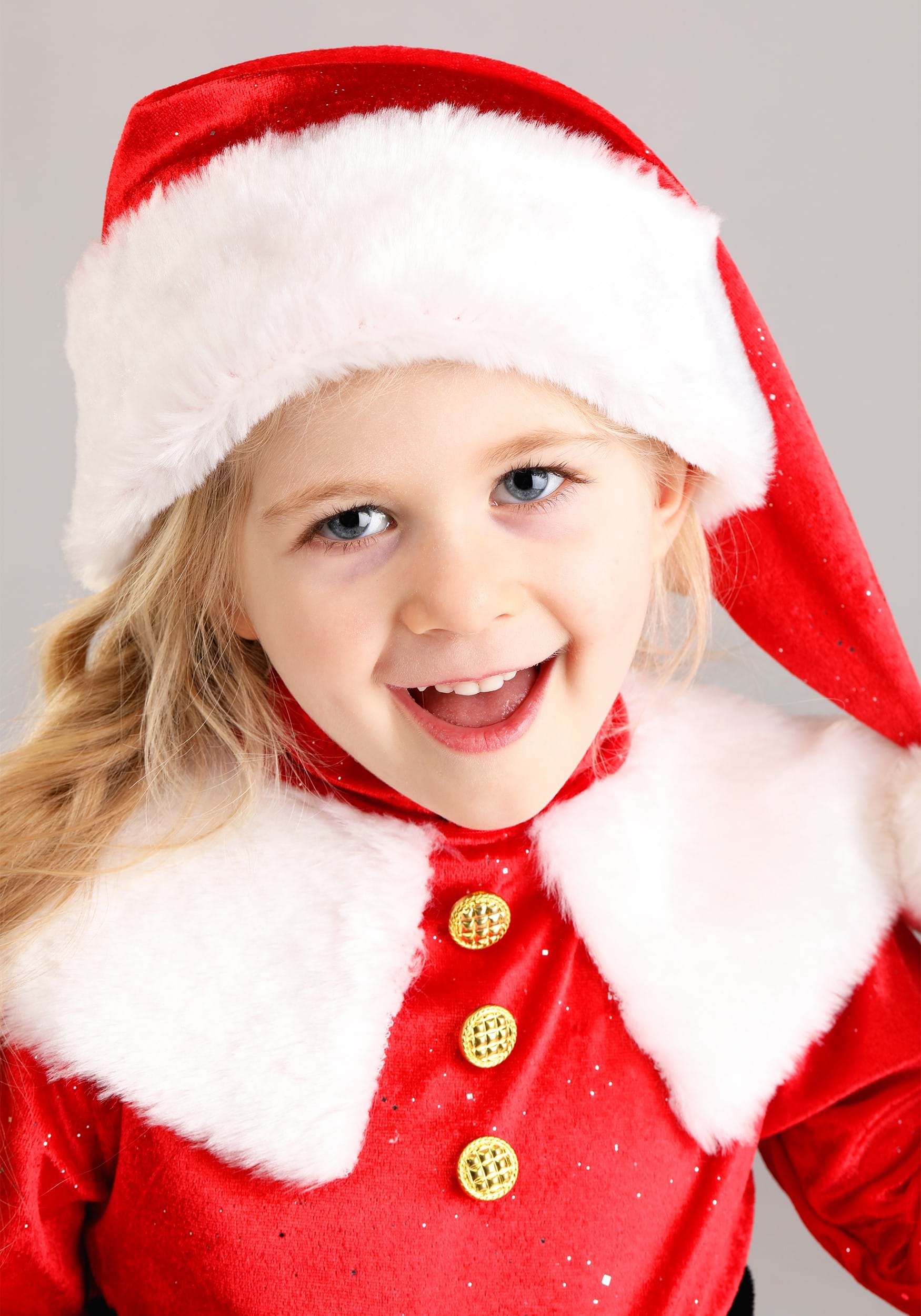 When Santa needs a little extra sparkle for the holiday season, this Toddler Premium Santa Costume Dress is the perfect pick. Packed with festive charm, it turns your toddler into the most photogenic helper at the North Pole—or at least at the family Christmas party. With its glittery red tinsel velour, plush white trim, and twirl-ready skirt, this dress is a walking (and possibly dancing) holiday card.