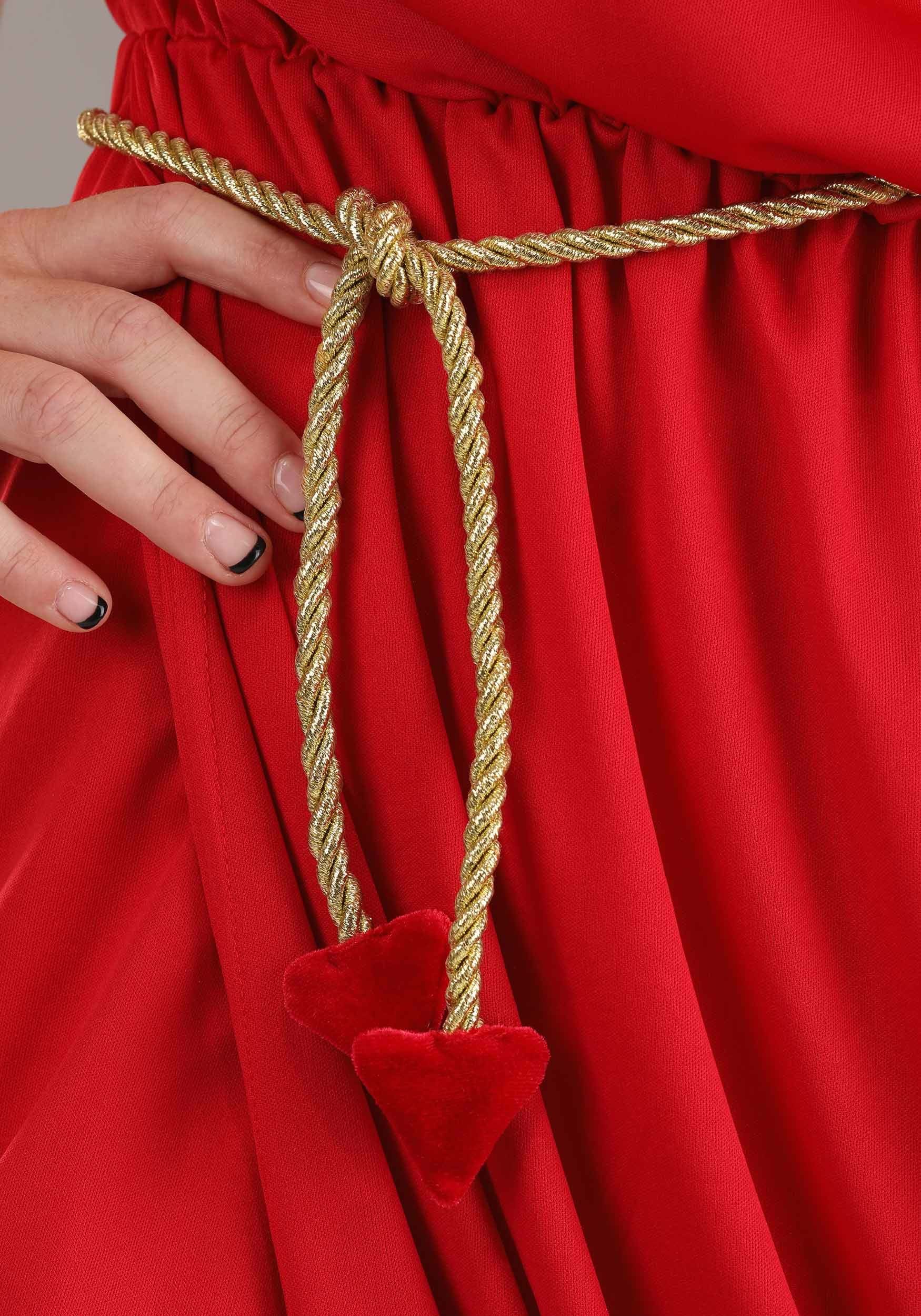 Of course the goddess of love looks completely loveable herself! Be a real heartthrob this exclusive Cupid Costume for Women! The pullover red satin dress has a one-shouldered design that would look right at home at a red carpet event on Mount Olympus. The braided gold belt can be tied however you like and is tipped on each end with red velvet hearts. The dress's waist and sides are gathered to create a flattering ruched look that is perfect for flying around the world granting love to the lovelorn. The poseable red wings slip on easily thanks to the gold elastic shoulder straps.