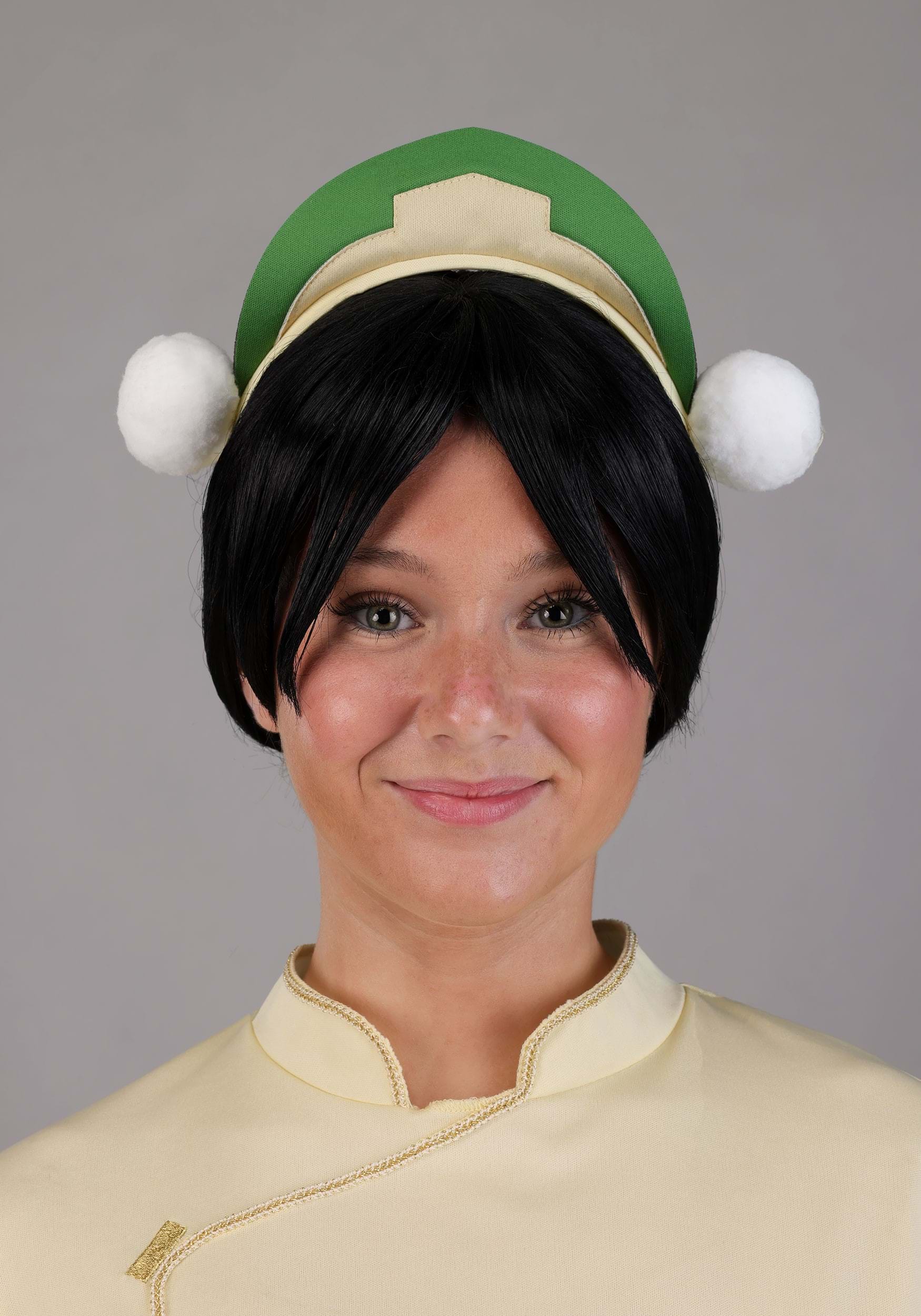 Accessories like the black belt, wristbands, and ankle wraps bring the whole outfit together with just enough structure to feel combat-ready. And yes, the green and cream headpiece with its poofy white accents is included, because no Toph look is complete without her signature hair buns. Bare feet encouraged for authenticity—and dramatic stomping.