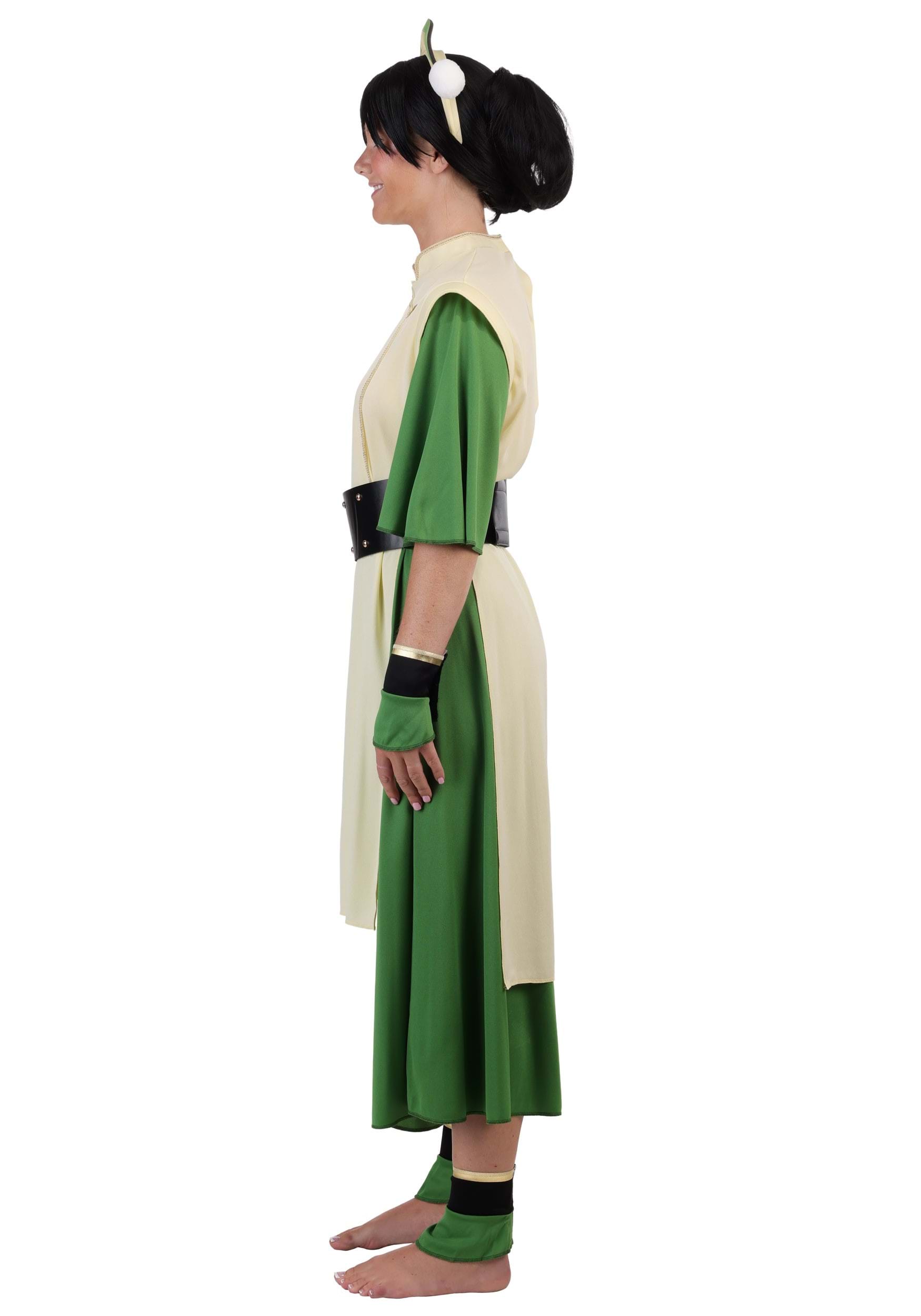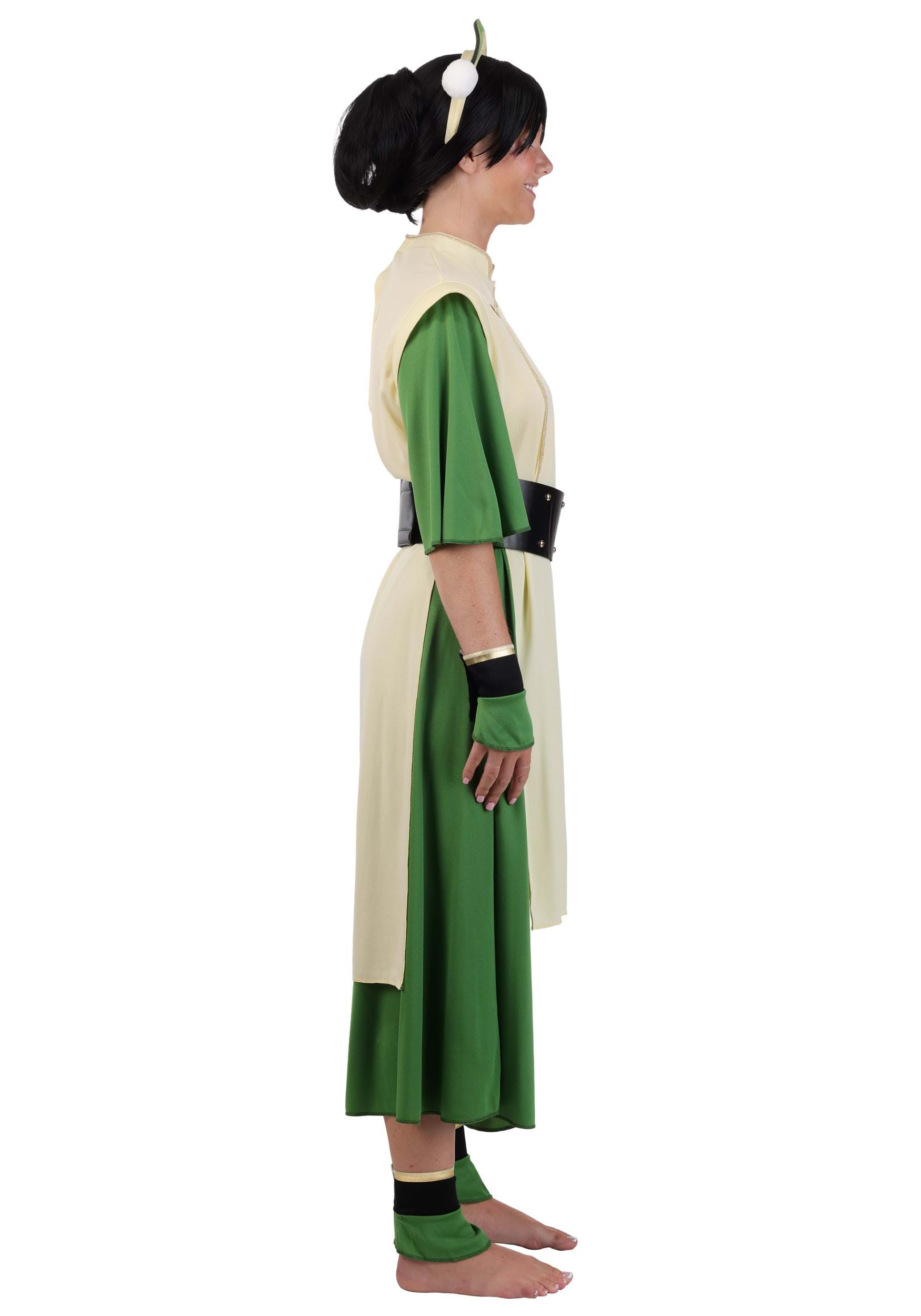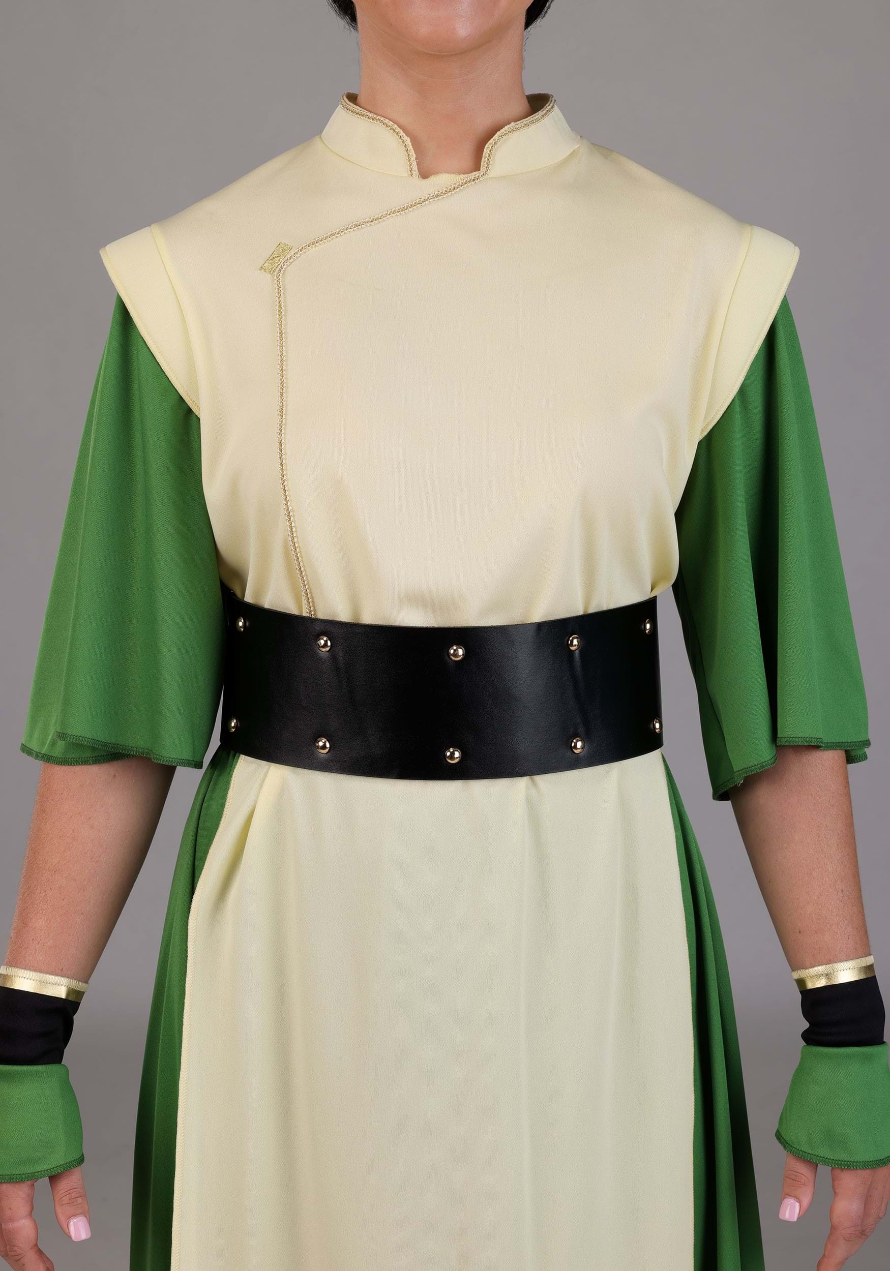 Crafted from polyester, this officially licensed costume recreates Toph’s Earth Kingdom outfit with signature green and cream tones that are as iconic as her rock armor entrance. The robe-style tunic features wide sleeves and an overlapping neckline, staying true to her traditional yet practical warrior look. The matching green cropped pants allow for full mobility—perfect for bending battles or just asserting dominance in any given conversation.