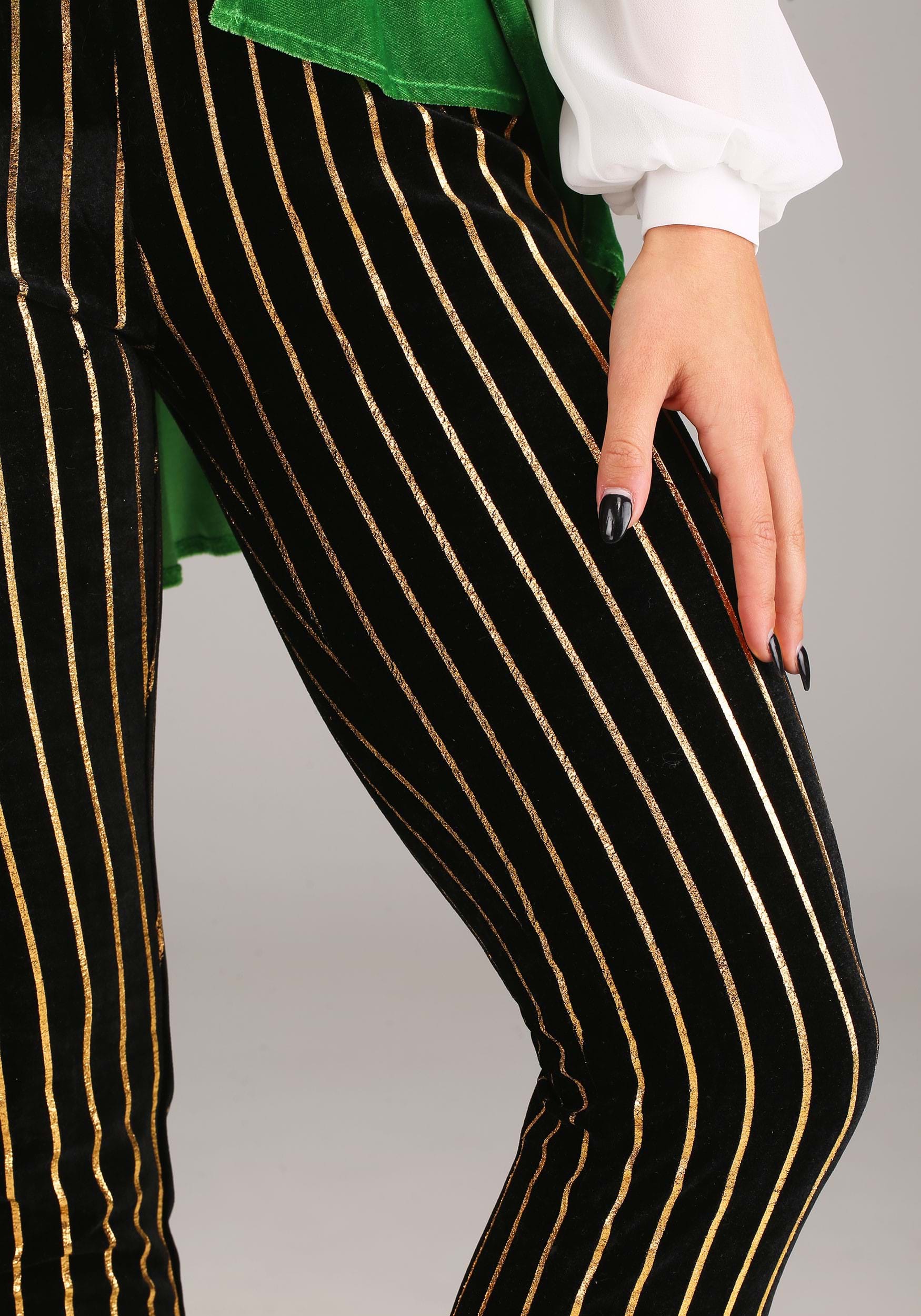 - Hat has gold satin ribbon band, printed gold pinstripes