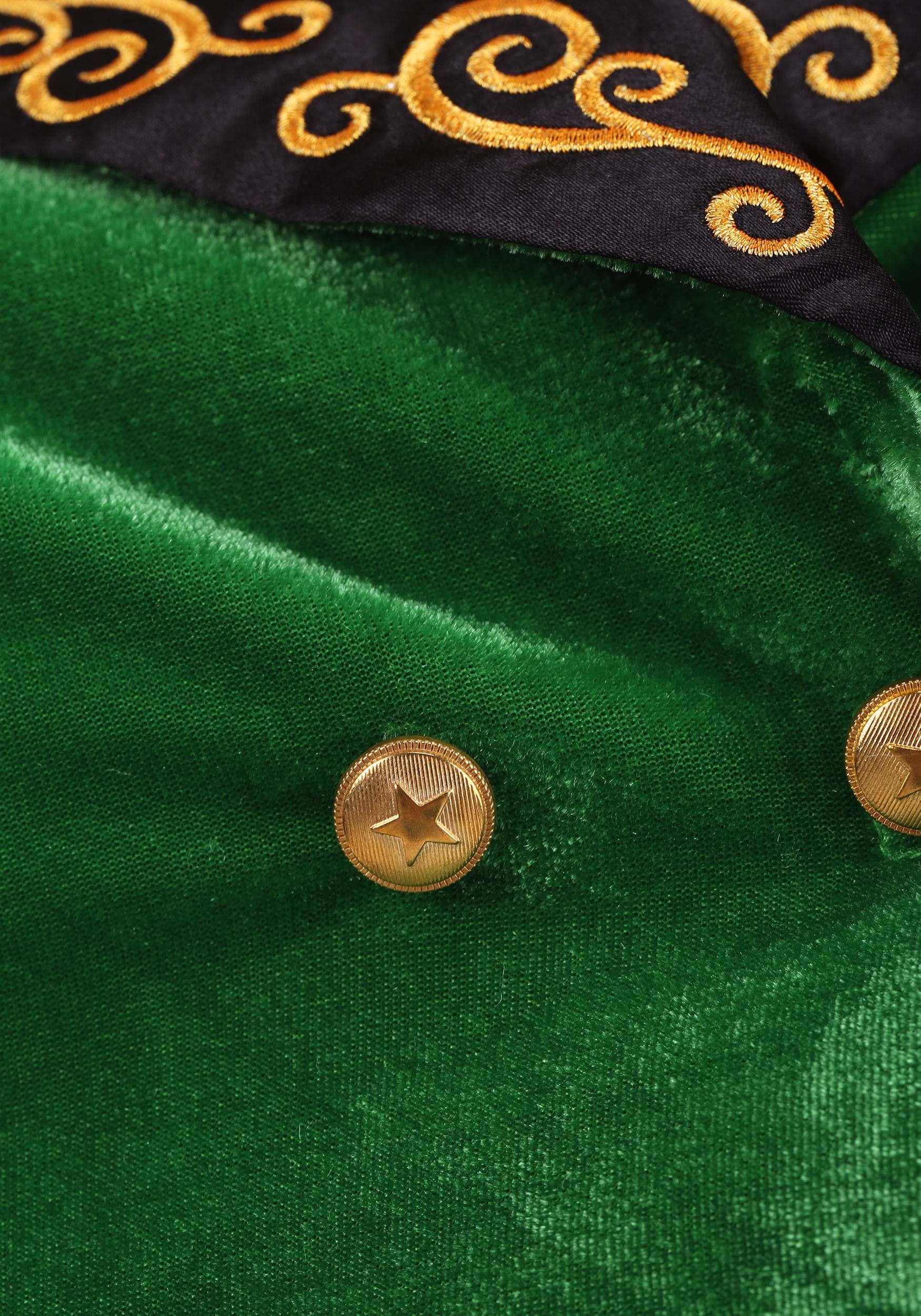 - Vest has satin collar and lapels with gold embroidered shamrocks and vines