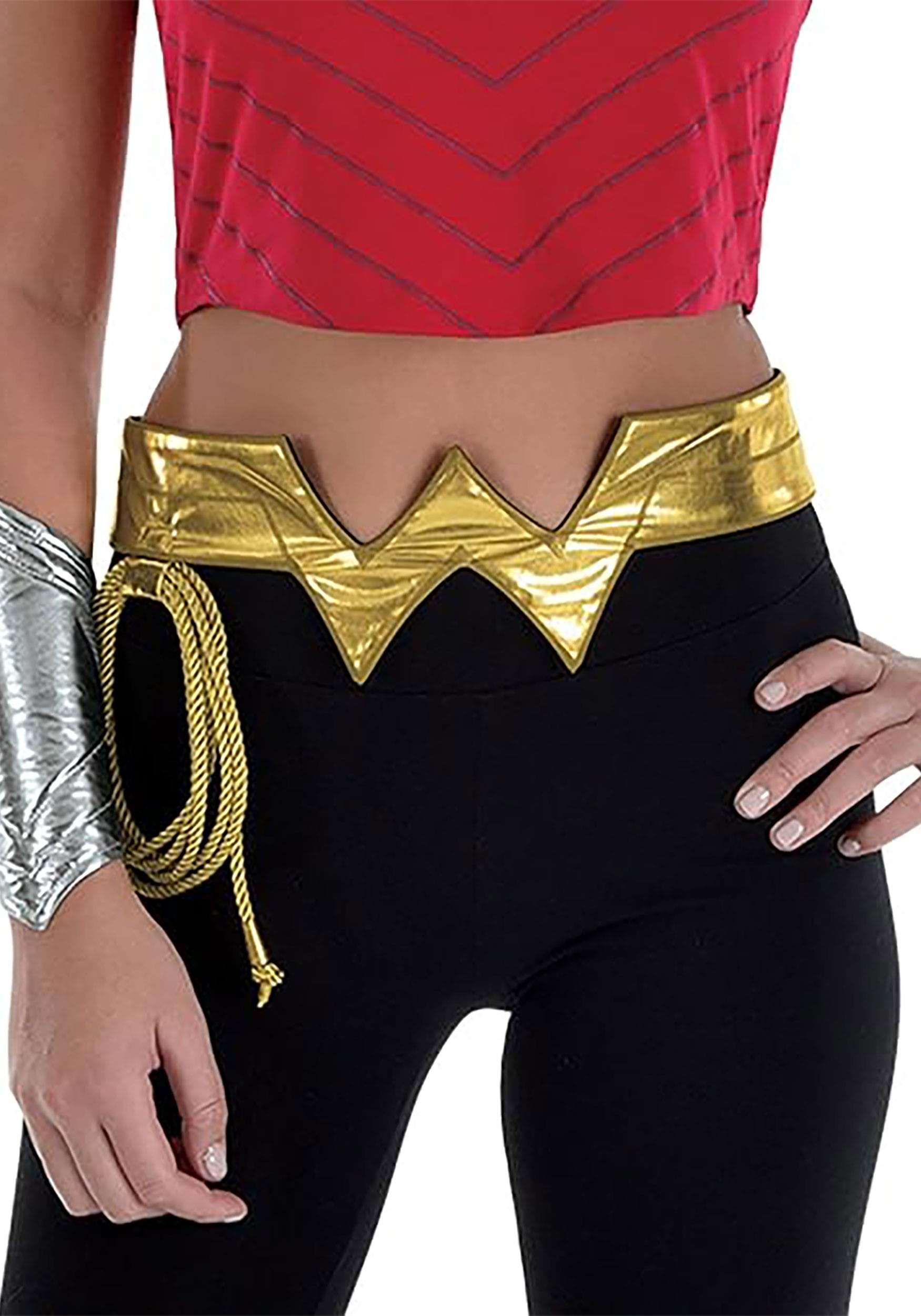 The gold-colored belt is shaped with a “W” front and center, giving your outfit that polished, powerful finish. And of course, it wouldn’t be Wonder Woman without her trusty golden lasso, which comes included for all your truth-extracting, bad-guy-wrangling needs. It’s an easy, no-fuss way to join the Justice League without needing a full-body transformation sequence.